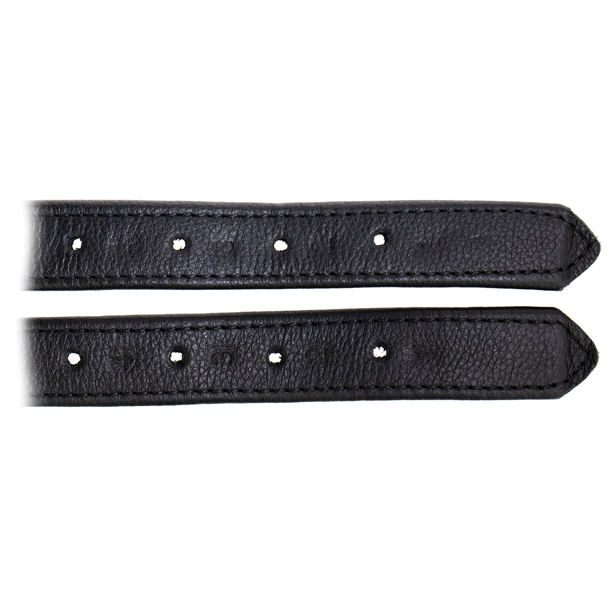 Двойные прошитые путлища из крепкой кожи. Отверстия пронумерованы.