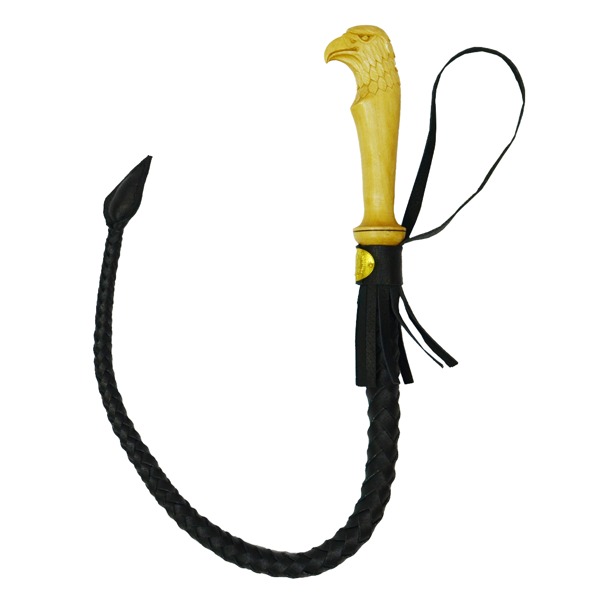 Нагайка с различными деревянными фигурками на рукояти. Подарок упакован в декоративный мешок с изображением герба.