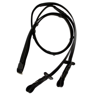 Прорезиненный повод с ограничителями из прочной тесьмы с нашивками пторив скольжения. Фурнитура серебристого цвета.