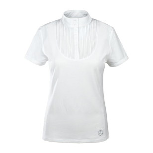 Тонкая блуза для выступлений с коротким рукавом и белым воротничком. Из лёгкой, выводящей влагу, дышащей ткани.