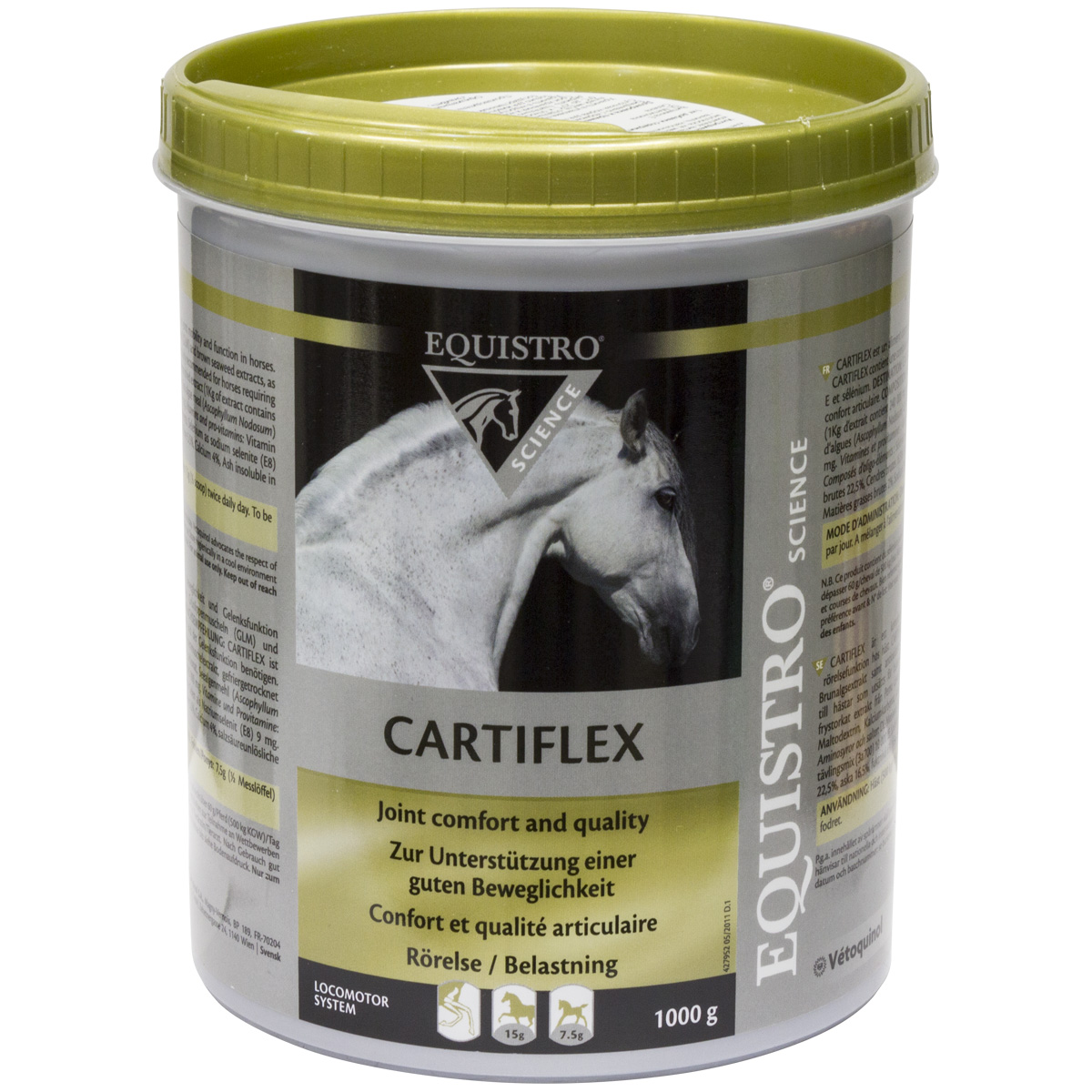 Эквистро КАРТИФЛЕКС нормализует обмен веществ в хрящевой ткани у лошадей. Глюкозаминогликаны, содержащиеся в экстракте зеленого губчатого моллюска, регулируют вязкость синовиальной жидкости, обладают выраженным артропротекторным действием. DL-метионин в качестве предшественника цистеина требуется для синтеза глюкозаминогликана сульфата. Витамин Е и селен защищают клетки соединительной ткани от агрессивных свободных радикалов.