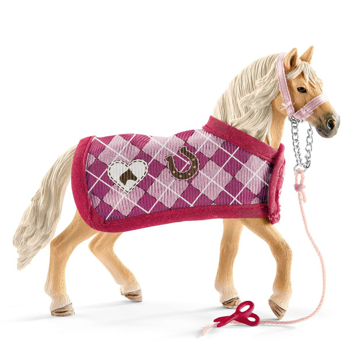 Особенности: • Попона на липучках удобно снимается и надевается на лошадь. • Фигурки людей от Шляйх могут держать в руках ножницы и другие аксессуары.
