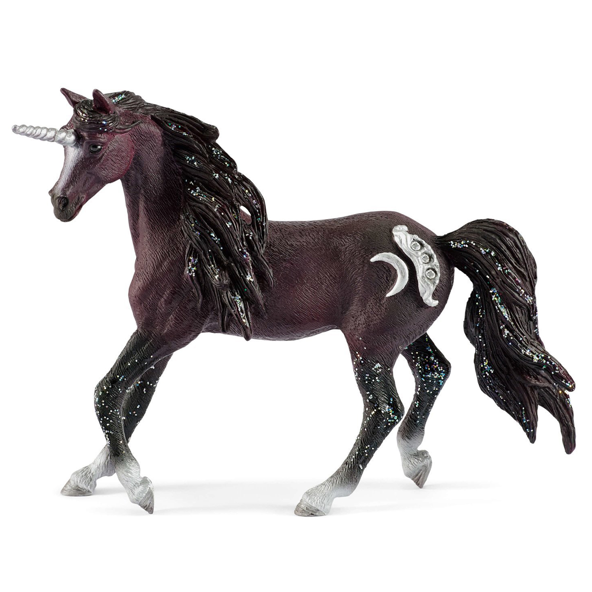 Этот гордый жеребец — лунный единорог. Он такой же пугливый и таинственный, как и все единороги, но вы можете почувствовать силу и темперамент жеребца, который всем сердцем и душой берет на себя роль защитника.