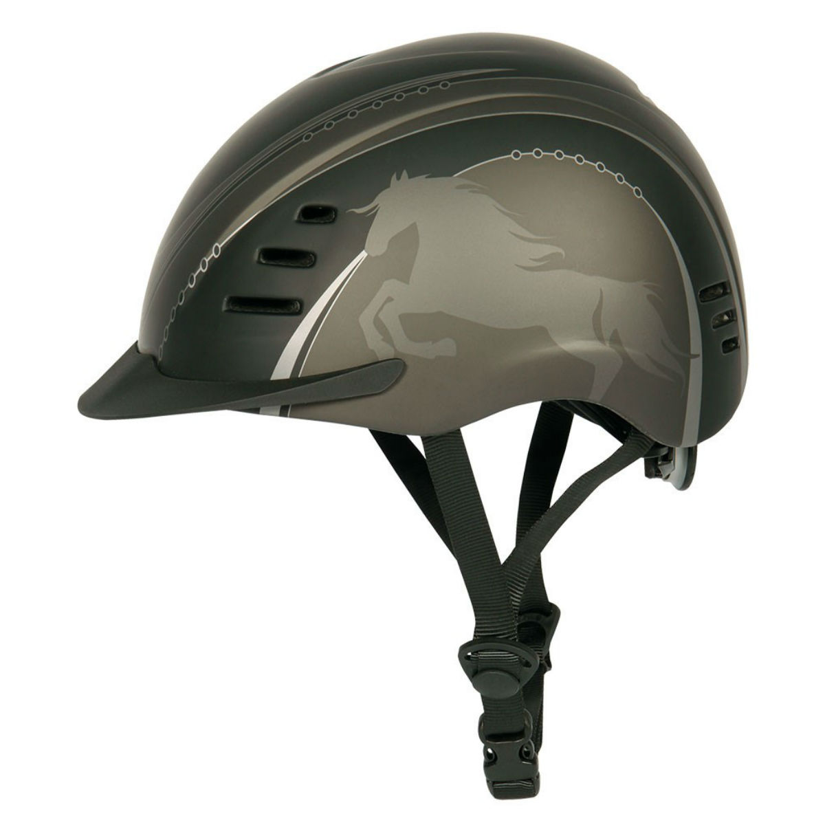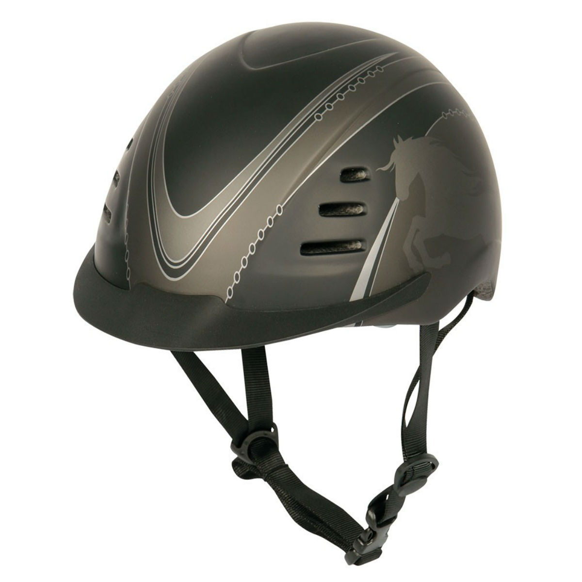 Легкий пластиковый регулируемый шлем (adjustable helmet for rider) будет незаменим для верховой езды. Шлем украшен принтом. Спереди и сзади на шлеме располагаются вентиляционные отверстия. Регулировка размера позволяет приобрести шлем "на вырост", что очень важно при покупке шлема для ребенка. Благодаря системе регулирования возможно корректировать размер шлема в зависимости от сезона: зимой достаточно немного ослабить шлем, чтобы носить его с подшлемником. Размер шлема регулируется элементами "Системы быстрой адаптации " (FAS - Fast Adapting System) на подбородной и в затылочной частях. Подложки из мягкого материала предотвращает натирание.