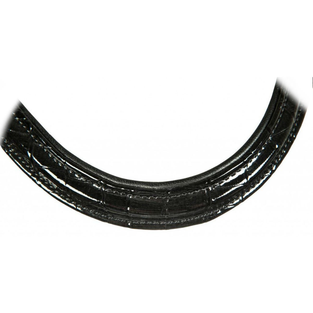 Оголовье из высококачественной натуральной кожи (Leather Bridle) с самозатягивающимся капсюлем. Фигурный налобник и капсюль выполнен из лаковой кожи с тиснением под рептилию. Мягкие подложки на капсюле, налобном и затылочном ремнях делает уздечку комфортной даже для чувствительных лошадей. Ремень капсюля проходит над затылочным ремнем. В комплекте с уздечкой идет тесьмяный повод с ограничителями и нашивками против скольжения. Кожа высокого качества и крепкая фурнитура обеспечат долгую службу уздечки. Трензель в комплект не входит.
