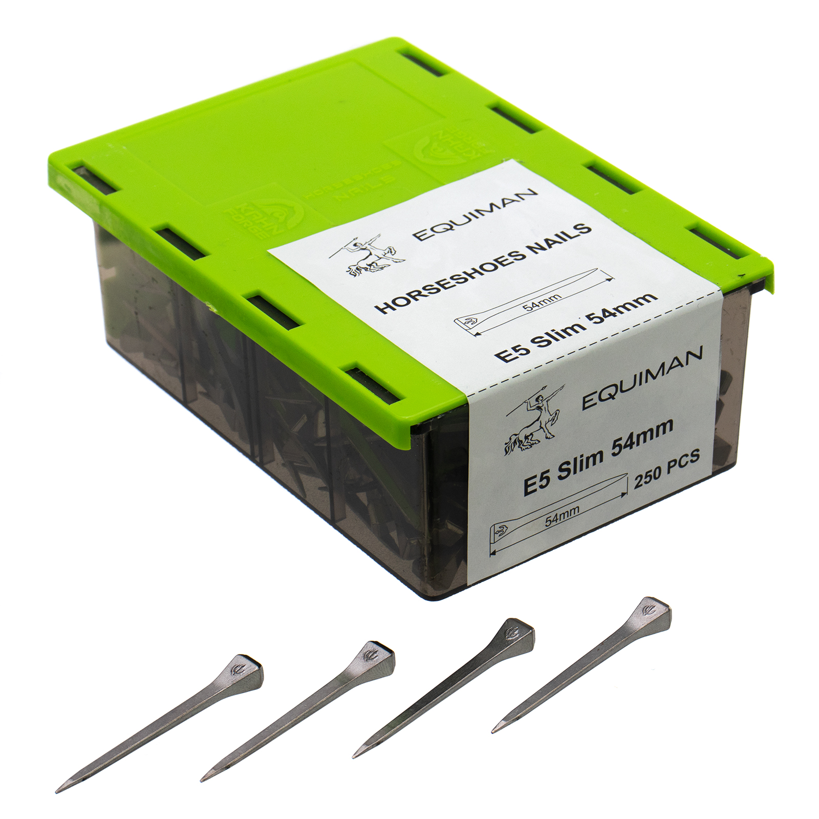 Ковочные гвозди Slim, это модель с прямоугольной головкой и удлиненной, тонкой ножкой. Они могут быть использованы для различных лошадей, подков и спортивных дисциплин. Гвоздь надежно держится во всех V-образных отверстиях подков. Подходят для подков типа LB, BM и DM.