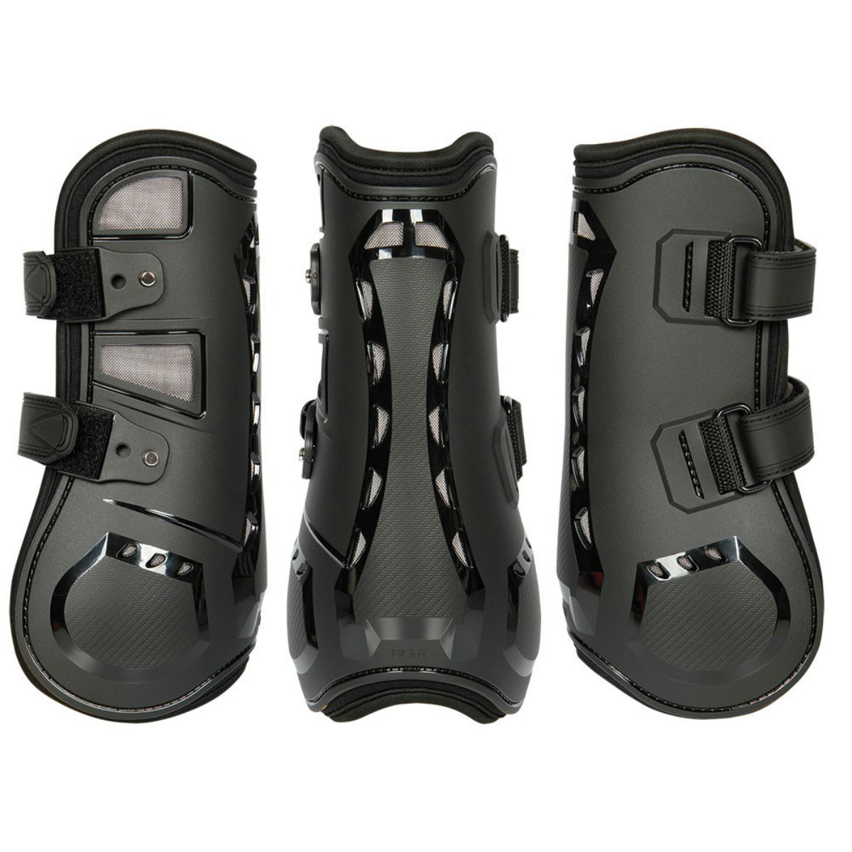 Ногавки анатомической формы (Tendon Boots Front). Мягкая подкладка из высококачественного ударопоглощающего неопрена, позволяющего коже «дышать». Внешняя сторона выполнена из прочного качественного пластика с отверстиями для дополнительной вентиляции. После того, как застежки на липучке отрегулированы, их легко открывать/закрывать с помощью специальной кнопки. Цвет: черный.