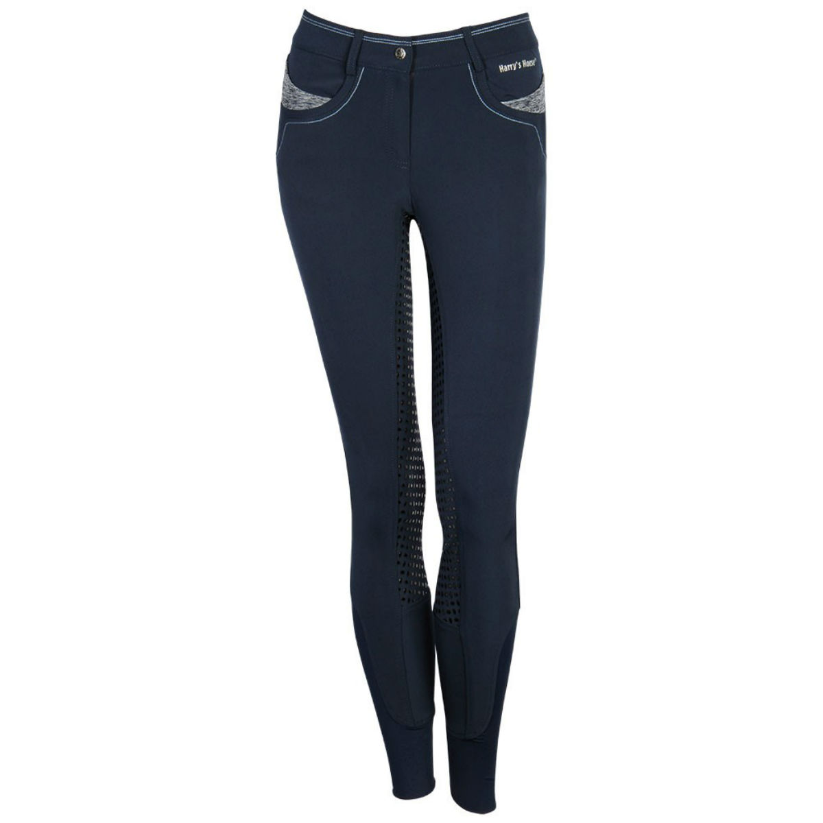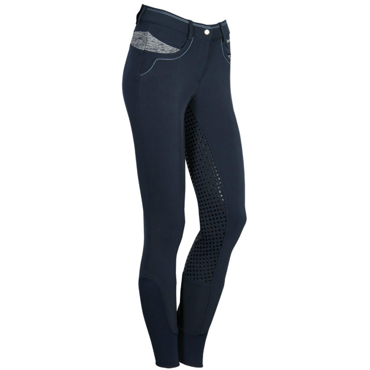 Стильные бриджи с полной силиконовой леей (Riding Breeches with Silicone Patch). Благодаря отличным эластичным качествам, бриджи хорошо обтягивают фигуру и прекрасно сохраняют форму. На поясе есть петли для ремня. Два передних набедренных кармана. Застёгиваются на молнию и брючный крючок. Бриджи украшены контрастными вставками и отстрочкой. В области щиколотки имеется эластичная вставка для удобства одевания.