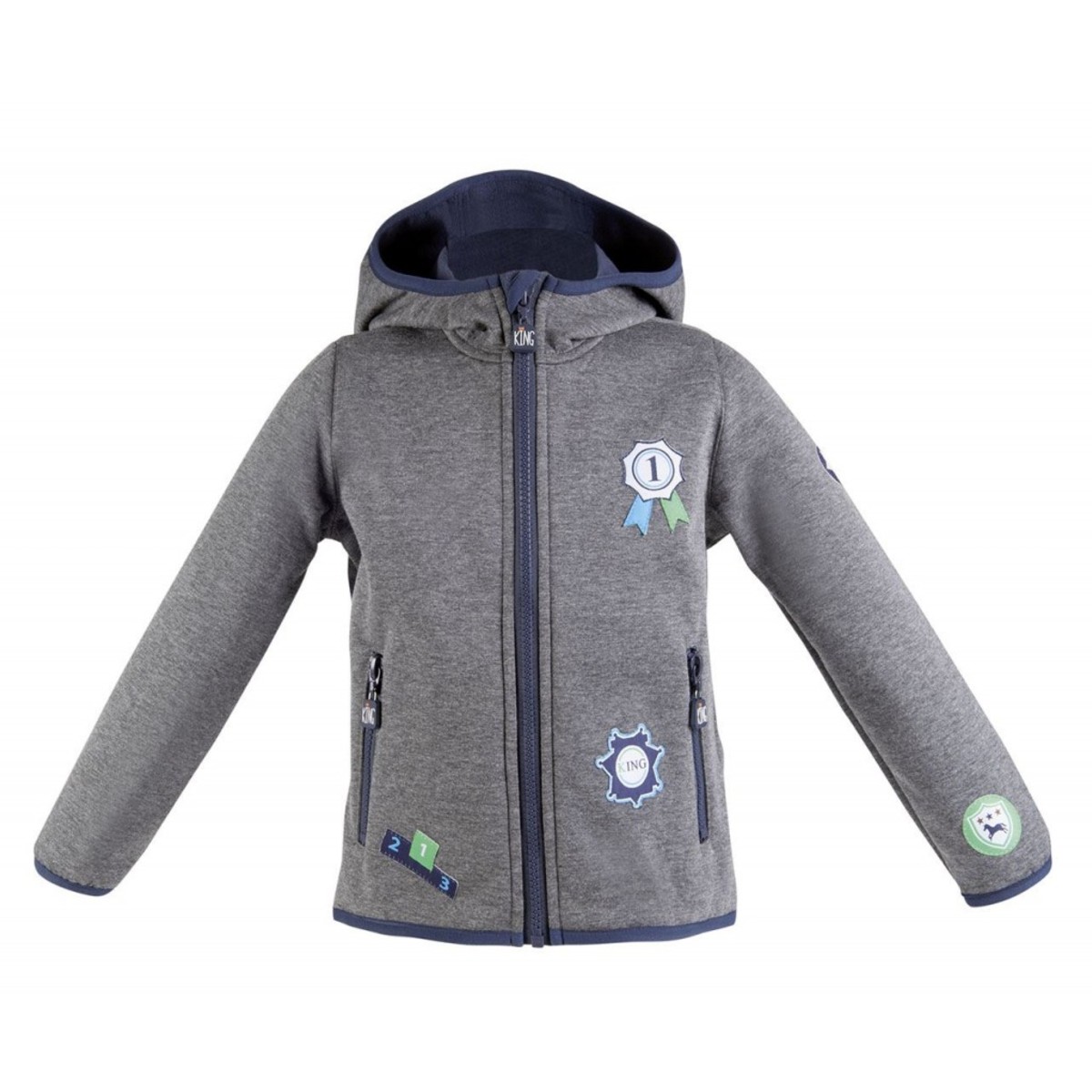Мягкая и очень комфортная детская толстовка (Fleece Jacket) с капюшоном на флисовом подкладе. Толстовка застегивается на молнию. Два боковых кармана на молнии. Украшена аппликациями.