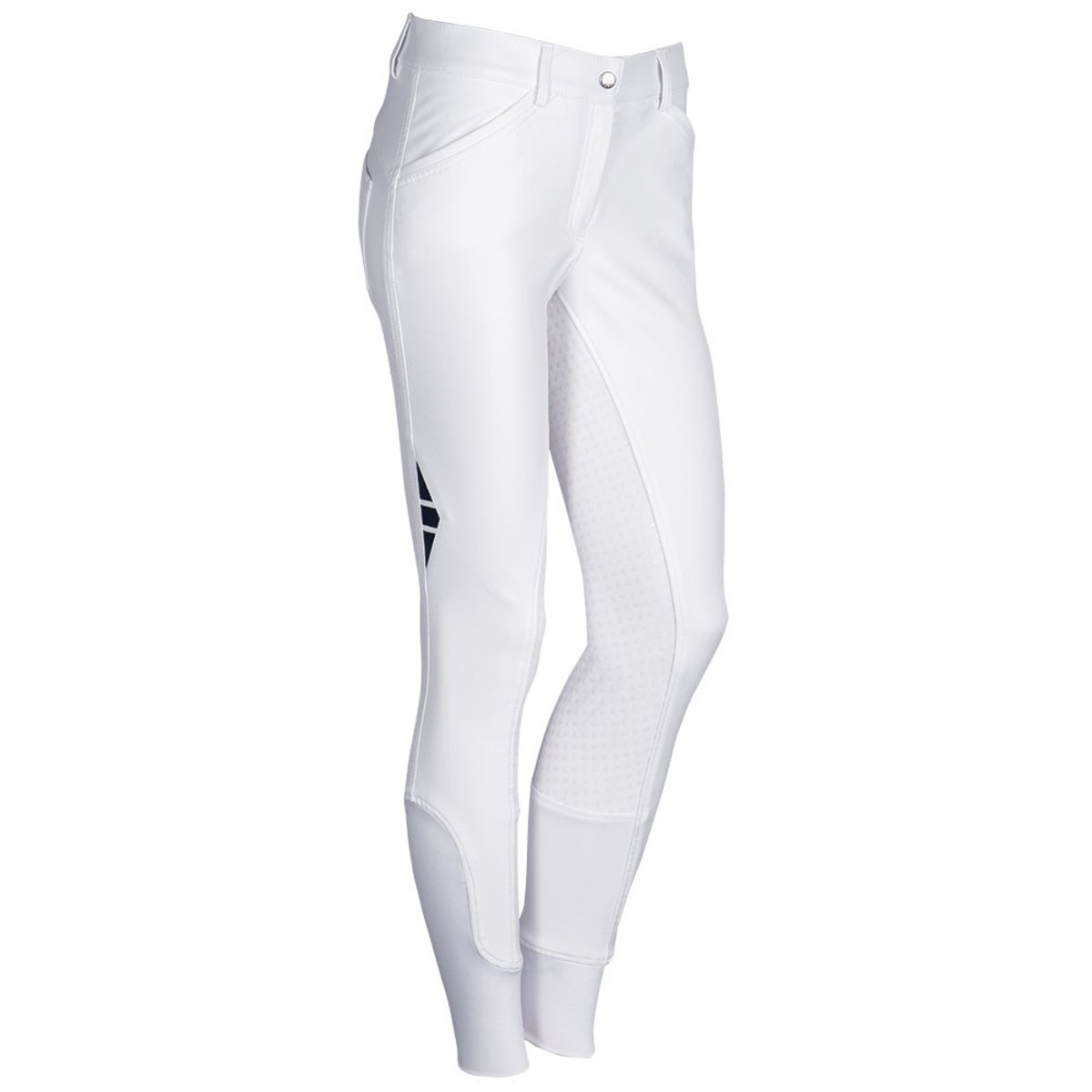 Женские бриджи с полной силиконовой леей (Riding Breeches with Silicone Patch). Силиконовая лея обеспечивает наибольшую фиксацию в седле. На поясе петли для ремня. Два передних набедренных кармана и два кармана сзади. Застёгиваются на молнию и брючный крючок. В области щиколотки имеются эластичные сетчатые вставки для удобства одевания.