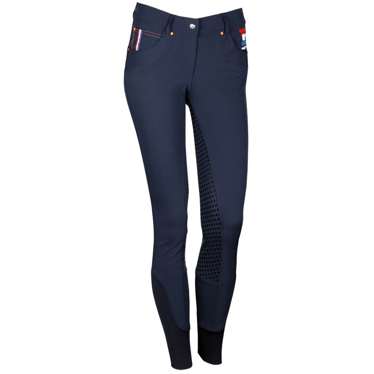 Женские бриджи с полной силиконовой леей (Riding Breeches with Silicone Patch). Смотрятся стильно благодаря контрастным элементам и вышивке. Силиконовая лея обеспечивает наибольшую фиксацию в седле. На поясе петли для ремня. Два передних набедренных кармана и два кармана сзади. Застёгиваются на молнию и брючный крючок. В области щиколотки имеются эластичные сетчатые вставки для удобства одевания.