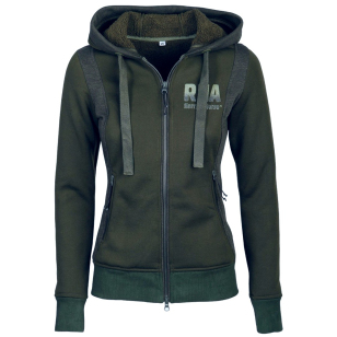 Теплая женская толстовка (Women's Fleece Jacket) на флисовом подкладе. Застегивается на молнию с двумя бегунками. Утеплённый капюшон на завязках. Два боковых кармана на молнии. Толстовка украшена аппликацией на спине.