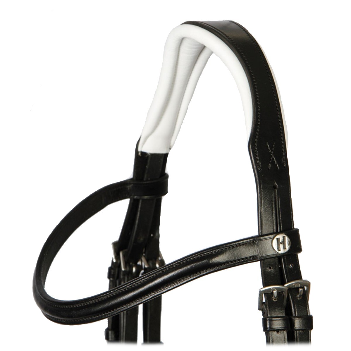 Оголовье трензельное (Leather Bridle) из высококачественной кожи с самозатягивающимся капсюлем. Затылочный ремень анатомической формы и широкий капсюль на белой мягкой подложке, что обеспечивает максимальный комфорт вашей лошади. В комплект входит тесьмяный повод с нашивками против скольжения. Нащечные ремни на крючках.