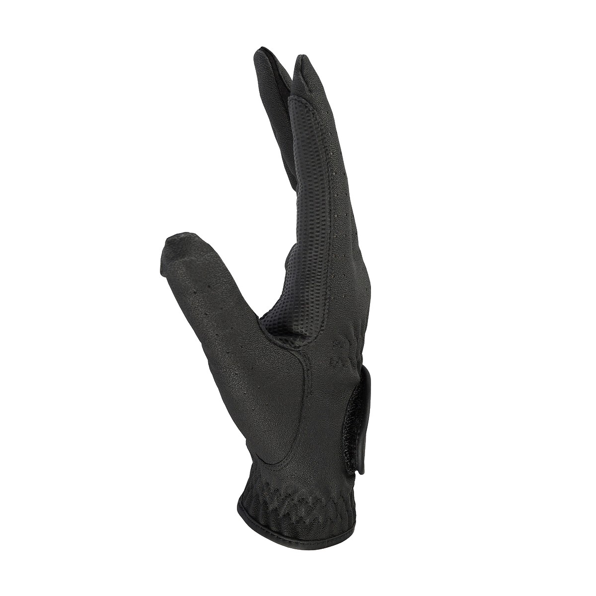 Перчатки (riding gloves) для верховой езды из полиуретановой кожи. Перфорация пропускают воздух, что обеспечивает комфорт во время езды. С усилением в области указательного пальца для лучшего сцепления с поводом. Застегиваются на липучку в области запястья. Перчатки хорошо облегают руки не стесняя движения. Удобные и износостойкие.