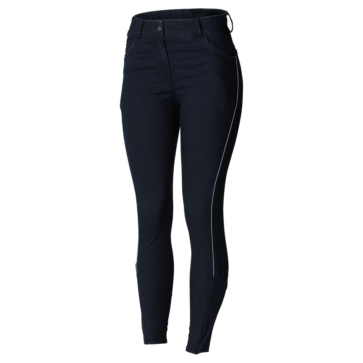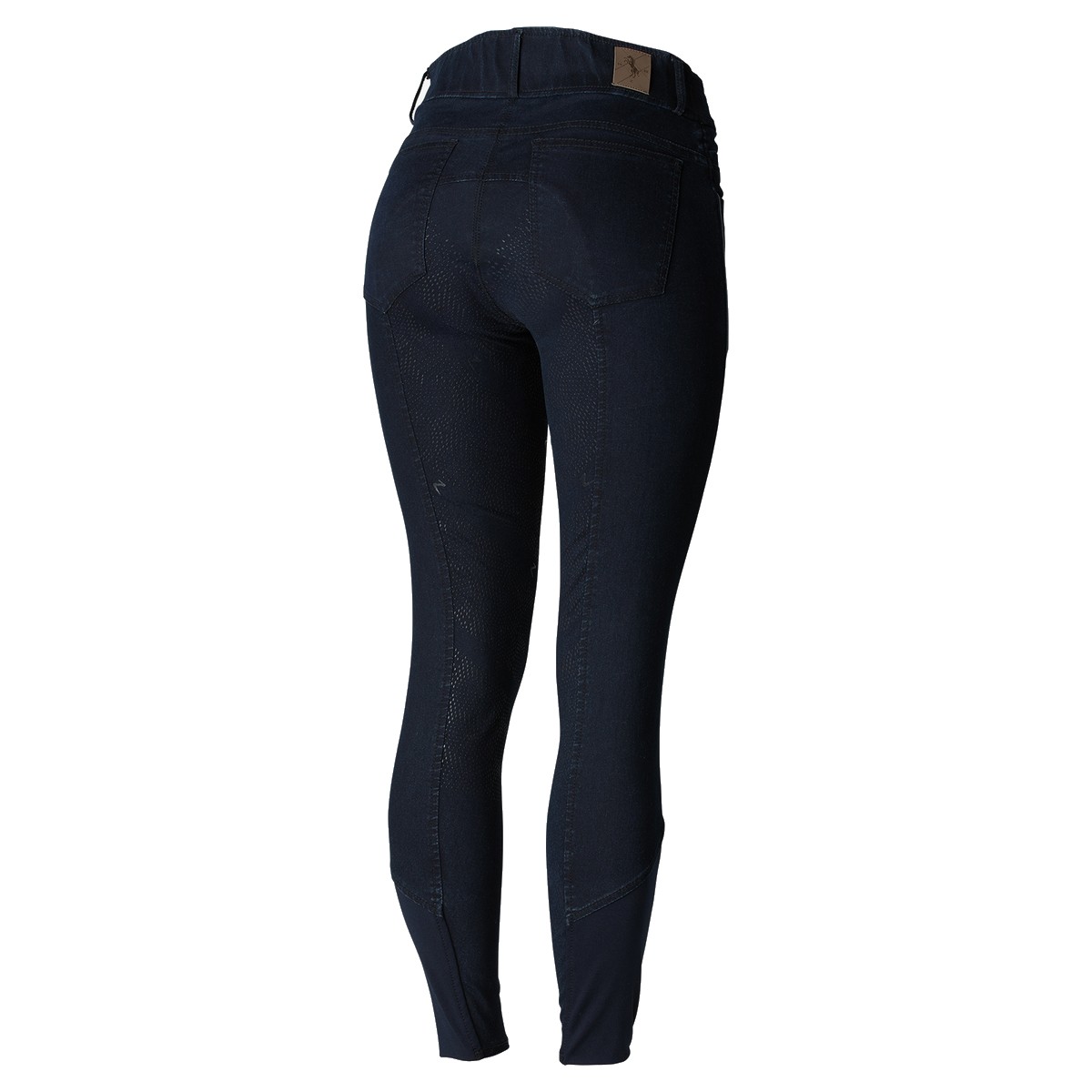 Стильные джинсовые бриджи с полной силиконовой леей (Breeches with Silicone Patch) из комфортной "дышащей" эластичной хлопковой ткани. Силиконовая лея обеспечивает наибольшую фиксацию в седле. Застёгиваются на молнию и пуговицу. На бриджах есть 5 карманов: два передних кармана с кармашком для монет и два кармана сзади. Похожи на обычные джинсы, отлично садятся по фигуре. Внизу брючин эластичные вставки для удобства одевания.