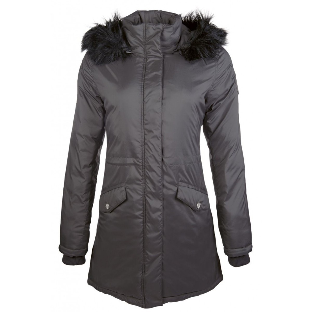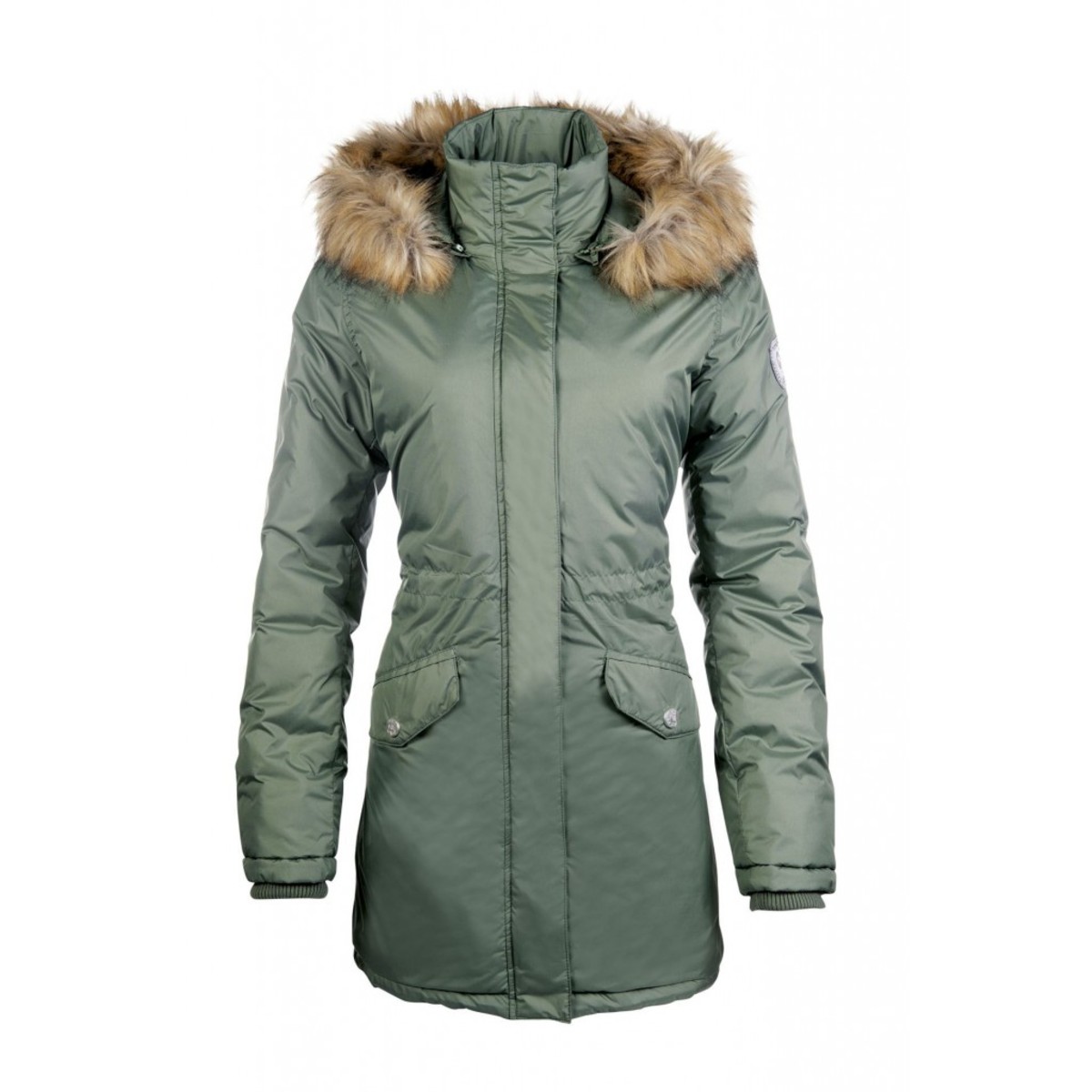 Теплая и практичная парка (parka) удлиненного фасона с кулиской. Выполнена из плотной, непродуваемой и грязеотталкивающей ткани, которая защищает от ветра и осадков. Парка застегивается на молнию с двумя бегунками, которую поверх закрывает ветронепродуваемая планка на кнопках. Капюшон и искусственный мех отстегиваются. Воротник-стойка защищает шею в прохладную погоду. Два боковых кармана на кнопках. Куртка украшена эмблемой на рукаве. В этой парке Вы будете самой стильной и модной.