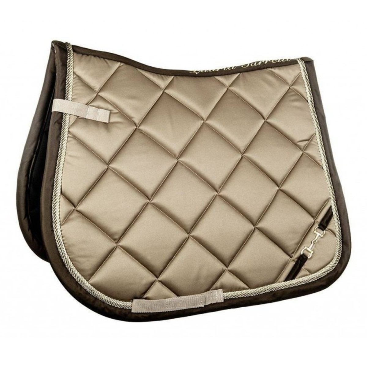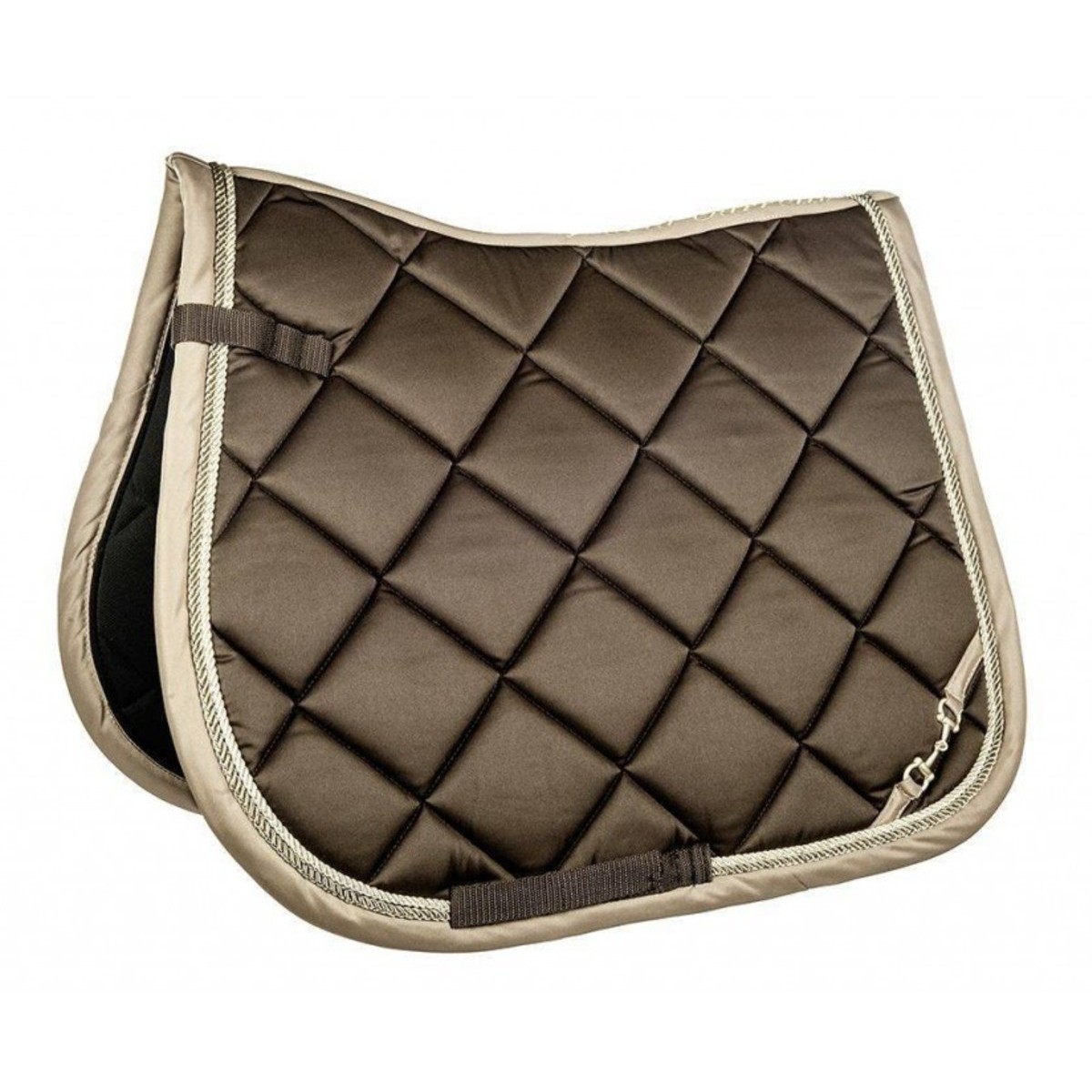 Универсальный вальтрап (All-Purpose Saddle Pad) анатомической формы. Дышащая сетчатая подкладка гарантирует превосходное поглощение влаги. Наполнитель из поролона и синтепона делает вальтрап объемным, что очень важно для амортизации. Вальтрап украшен ромбовидной отстрочкой, декоративным шнуром и трензелем в углу. Вальтрап хорошо держит форму и легок в уходе. Крепится на липучки.