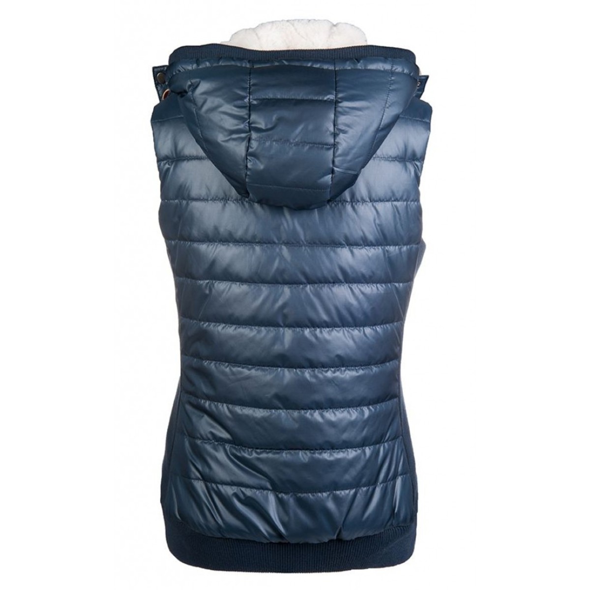 Теплая и практичная жилетка (Riding Vest) с капюшоном. Выполнена из плотной, водоотталкивающей ткани, которая защищает от ветра и осадков. Жилетка плотно прилегает к телу благодаря широкой эластичной резинке снизу. Воротник-стойка защищает шею в прохладную погоду. Подклад у жилетки и капюшона из плюша.
