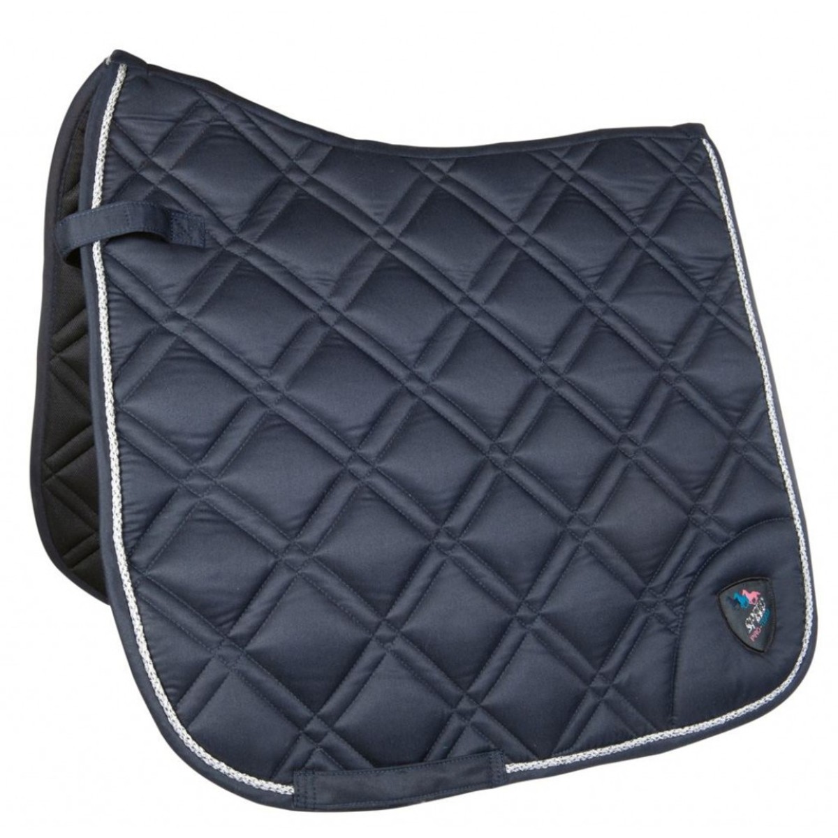 Универсальный вальтрап (All-Purpose Saddle Pad) анатомической формы. Дышащая сетчатая подкладка гарантирует превосходное поглощение влаги. Наполнитель из поролона и синтепона делает вальтрап объемным, что очень важно для амортизации. Вальтрап украшен ромбовидной отстрочкой и эмблемой. Вальтрап хорошо держит форму и легок в уходе. Крепится на липучки.