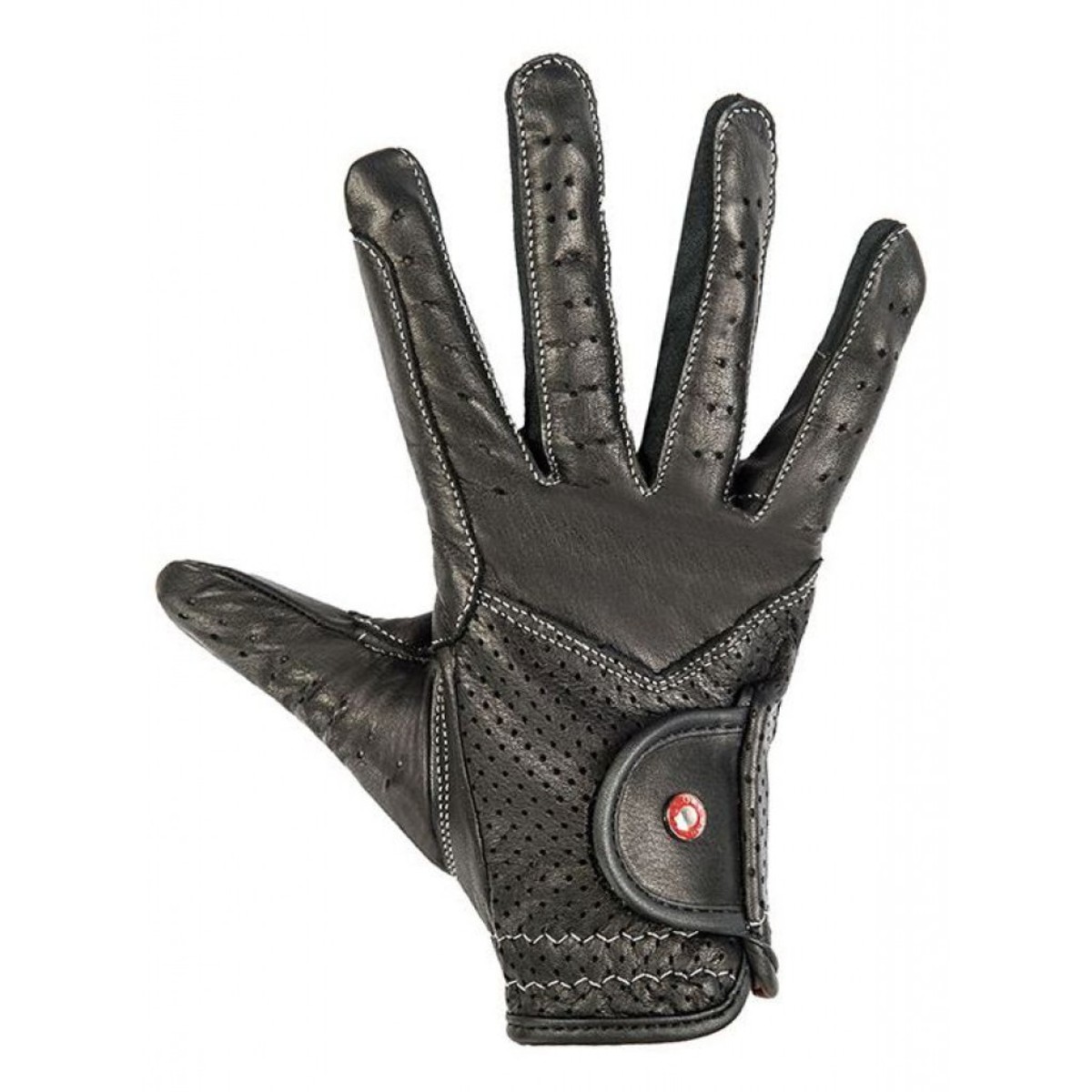 Перчатки для верховой езды (gloves for riding) из высококачественной натуральной кожи. Перфорированная кожа пропускает воздух, что обеспечивает комфорт во время езды. Перчатки хорошо облегают руки не стесняя движения. Застегиваются на липучку в области запястья. С усилением в области указательного пальца для лучшего сцепления с поводом. Удобные и износостойкие.