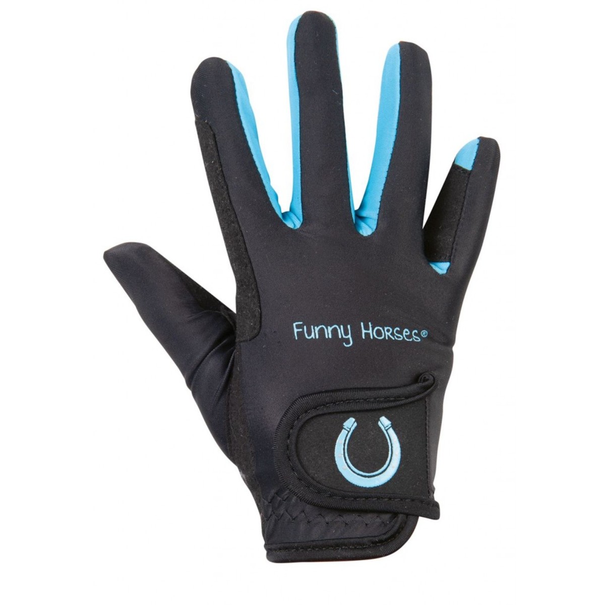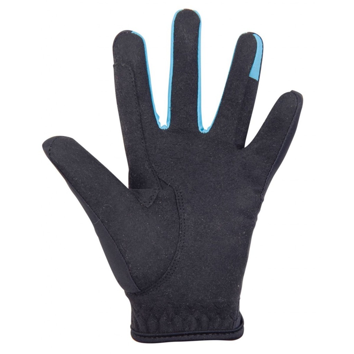 Детские перчатки для верховой езды (riding gloves) с контрастными вставками. Перчатки из эластичной ткани, внутренняя сторона из искусственной замши. С усилением в области указательного пальца для лучшего сцепления с поводом. Застегиваются на липучку в области запястья.