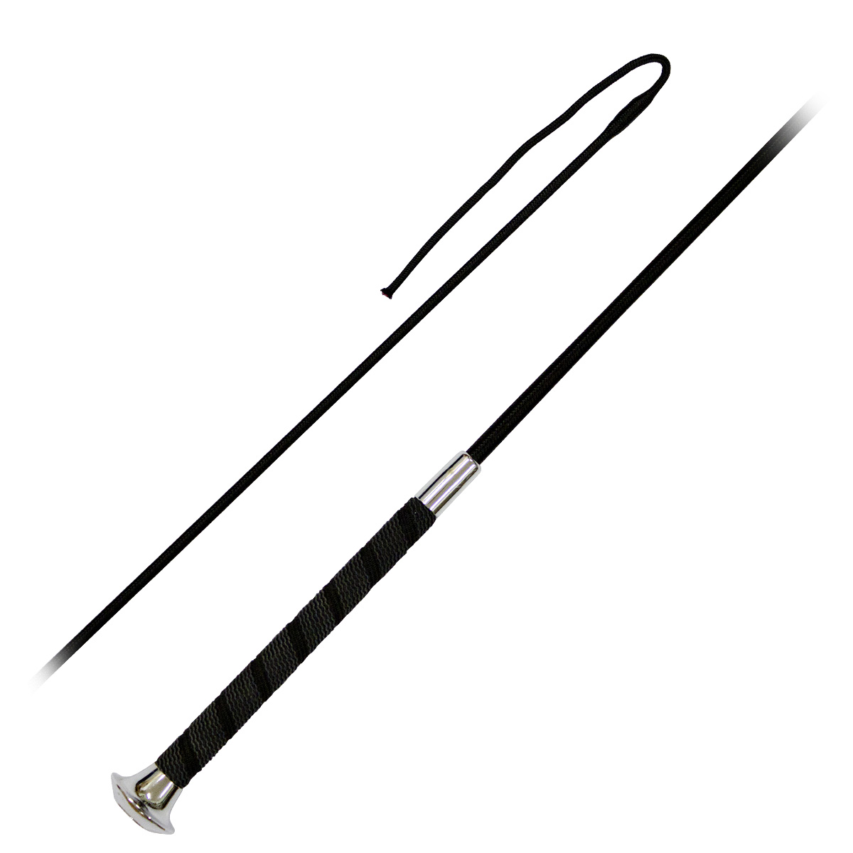 Современный выездковый хлыст (dressage whip) с металлическим наконечником. Удобное прорезиненное покрытие ручки предотвращает скольжение.