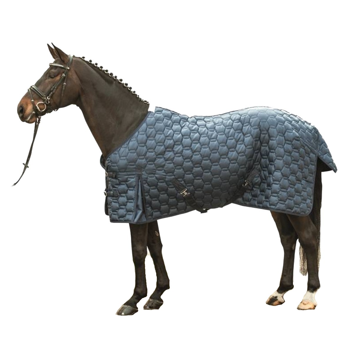 Теплая зимняя попона (Winter Blanket) из ветрозащитного, воздухопроницаемого, грязеотталкивающего полиэстера, прочного и износостойкого материала, согреет вашу лошадь в холодное время года. С внутренней стороны имеются снимающиеся эластичные ремни для задних ног, что предотвратит сползание попоны. Фурнитура серебристого цвета.