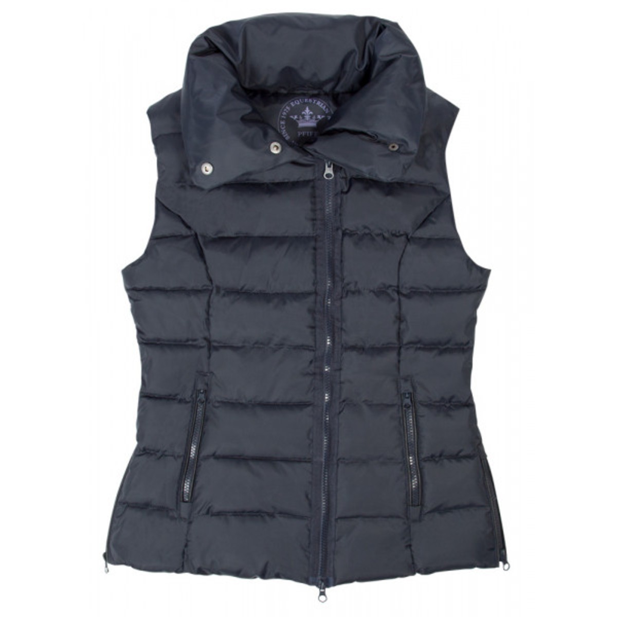 Жилет для верховой езды (Riding Vest) с высоким воротником из непродуваемой ткани на флисовом подкладе. Верхняя ткань легка в уходе благодаря грязеотталкивающей поверхности. Наполнитель и воротник-стойка делают жилет теплым для прохладной погоды, обеспечивая сохранение тепла. 2 наружных кармана разной глубины.. Жилет застегивается на широкую, ассиметрично расположенную молнию с двумя бегунками.