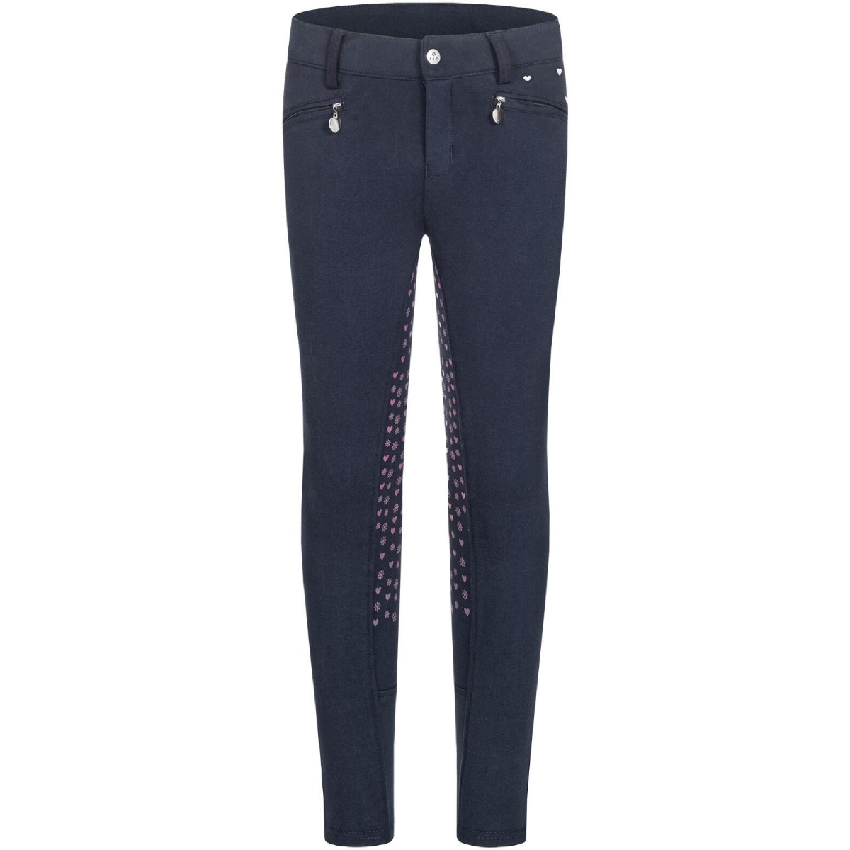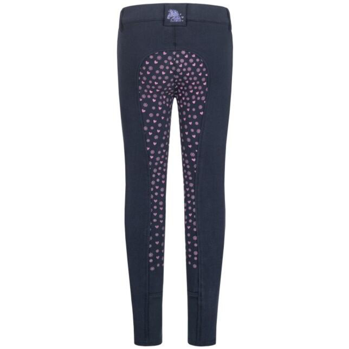 Детские зимние бриджи с полной силиконовой леей (Riding Breeches with Full Seat). Силиконовая лея обеспечивает наибольшую фиксацию в седле. Застёгиваются на молнию и брючный крючок. Два передних набедренных кармана на замочке. Яркая силиконовая лея в виде сердечек и снежинок. В области щиколотки эластичные вставки для удобства одевания.