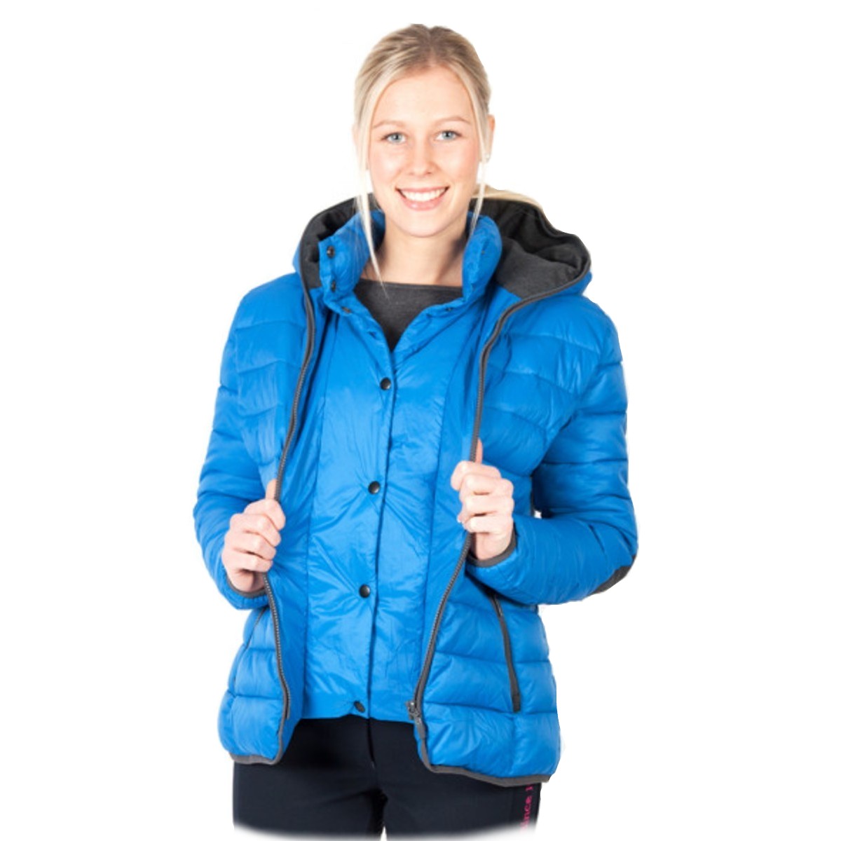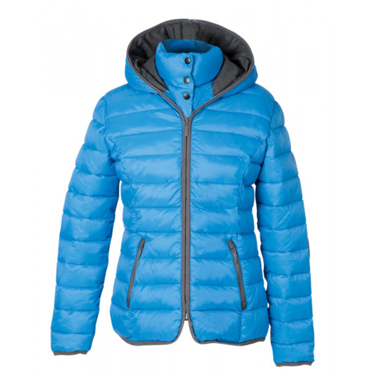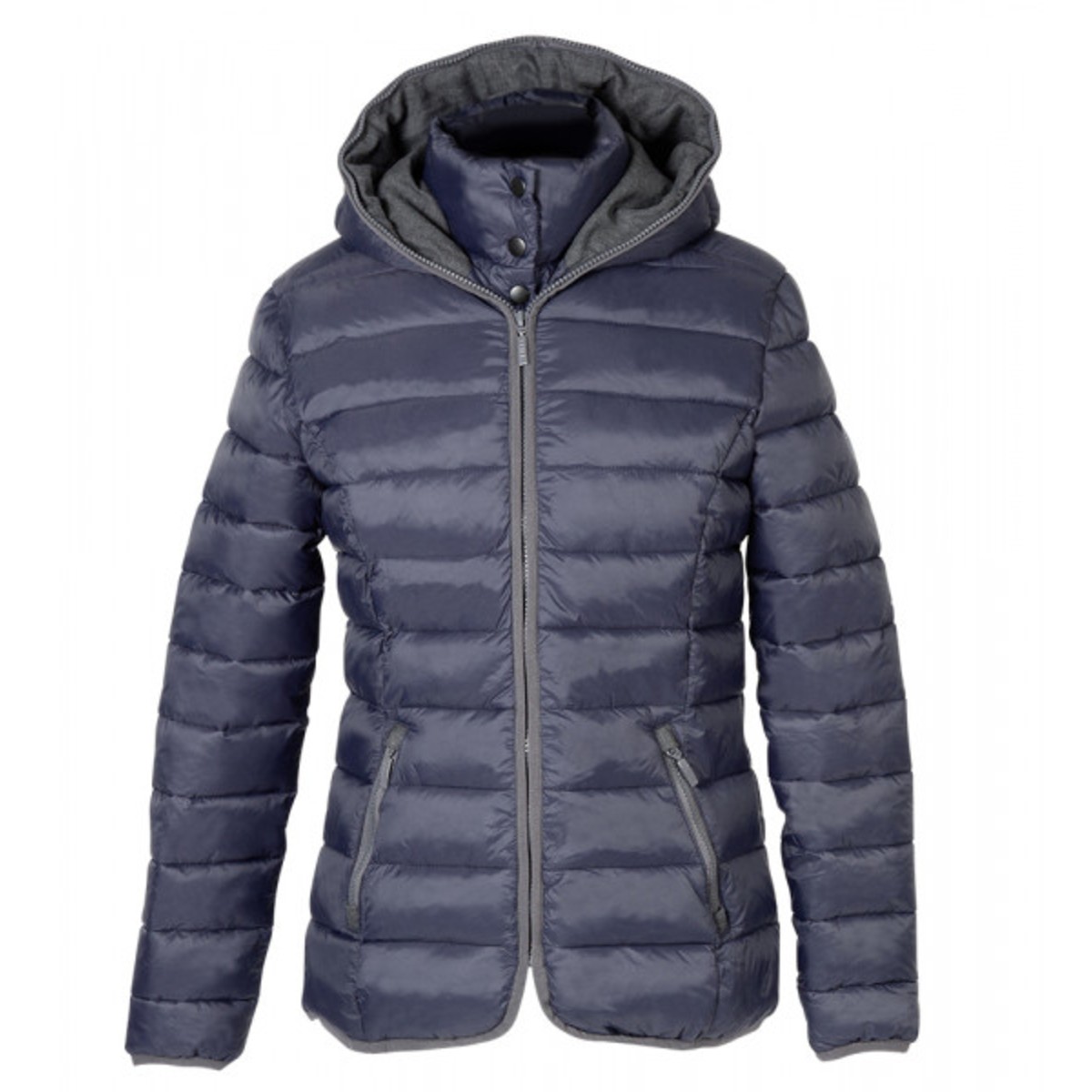 Модная стеганая куртка (Jacket) с двойным воротником и капюшоном, боковыми карманами на молнии и передней молнией с дополнительными кнопками. можно стирать при температуре до 40 ° C. Материал: Материал верха: 100% полиэстер с полиамидным покрытием, внутренняя подкладка: 100% полиэстер, набивка: 100% полиэстер.