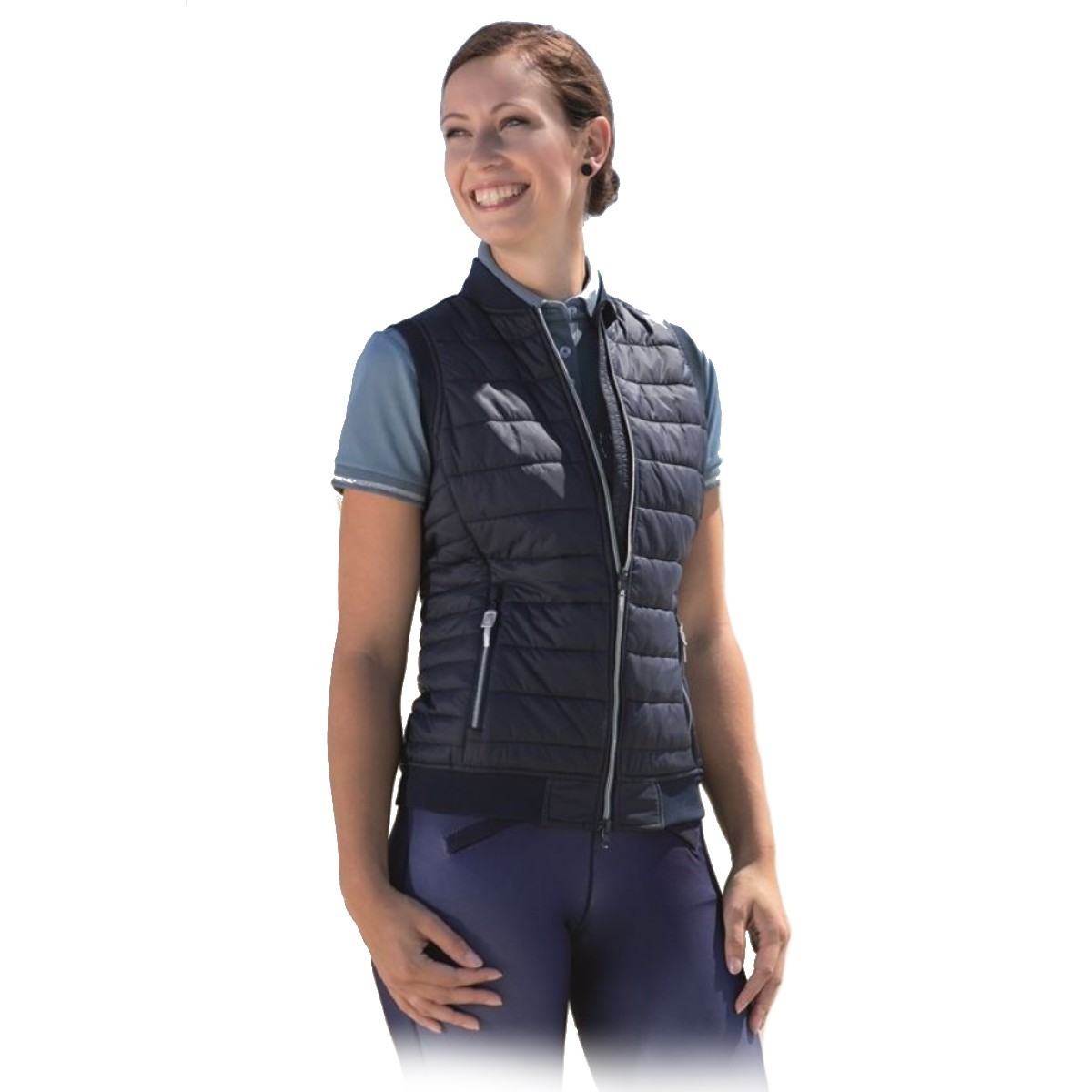 Жилет для верховой езды (Riding Vest) - незаменимая вещь в гарберобе на любой сезон. Выполнена из плотной, водоотталкивающей ткани, которая защищает от ветра и осадков. Жилет плотно прилегает к телу благодаря эластичной резинке снизу. Приталенный крой подчеркивает силуэт. 2 наружных кармана на молнии. Застегивается на молнию с двумя бегунками.