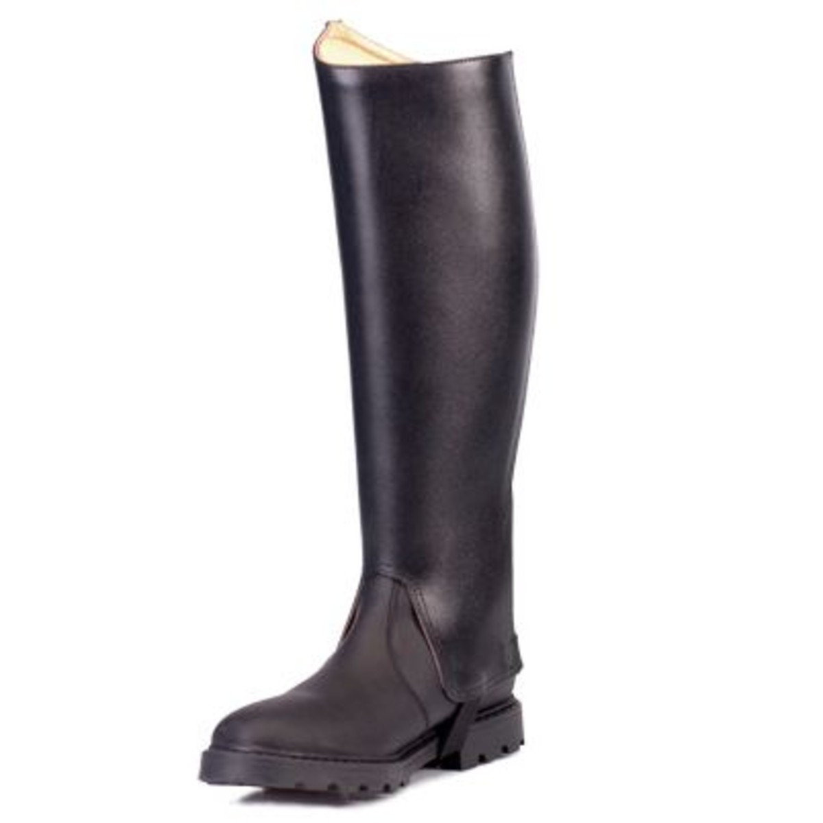 Краги (leathers) кожаные с подкладом, изготовлены из прочной натуральной кожи с нанесенным защитным покрытием, снабжены эластичной вставкой по всей длине, что обеспечивает плотное прилегание краги. С внутренней стороны краги имеется подклад, что позволяет дольше сохранить форму и обеспечить жесткость краги, а также придает изделию более привлекательный вид. Все края этих краг обшиты декоративной кожаной полосой. Это придает более привлекательный вид и позволяет дольше сохранить форму. В верхней части краги расположена декоративная полоса, имитирующая «уши» сапога, что придает этим крагам, одетым на ботинок, вид сапог.