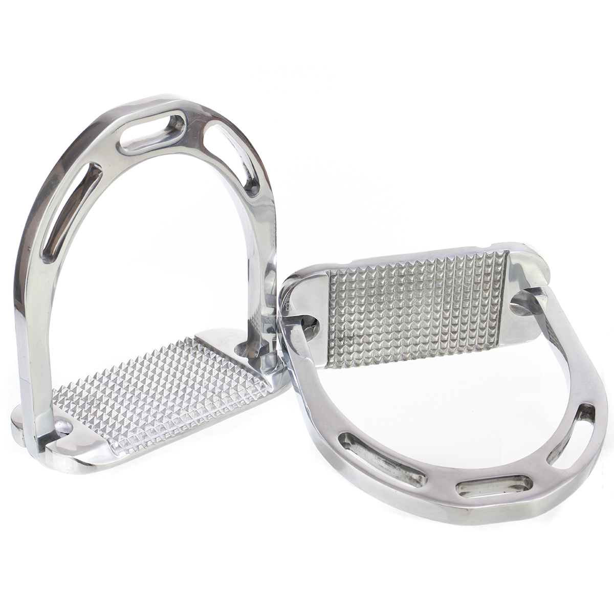 Облегченные алюминиевые стремена (Aluminium stirrup). Комфортная широкая подошва с анти-скользящей поверхностью и скосом, опускающим пятку вниз.