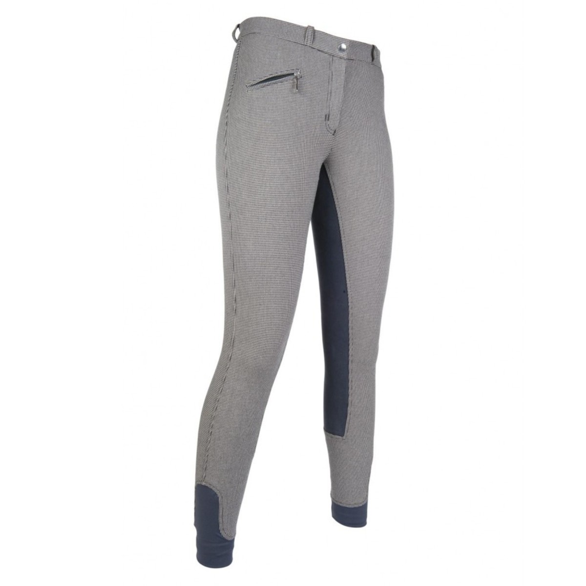 Бриджи с леей 3/4 из искусственной эластичной замши для верховой езды (Riding Breeches with Full Seat). Полная лея обеспечивает наибольшую фиксацию в седле. На ткани принт "гусинная лапка". Материал комфортный для тела, "дышащий", эластичный, грязеотталкивающий. На поясе петли для ремня. Спереди один карман на молнии. Застёгиваются на молнию и брючный крючок.