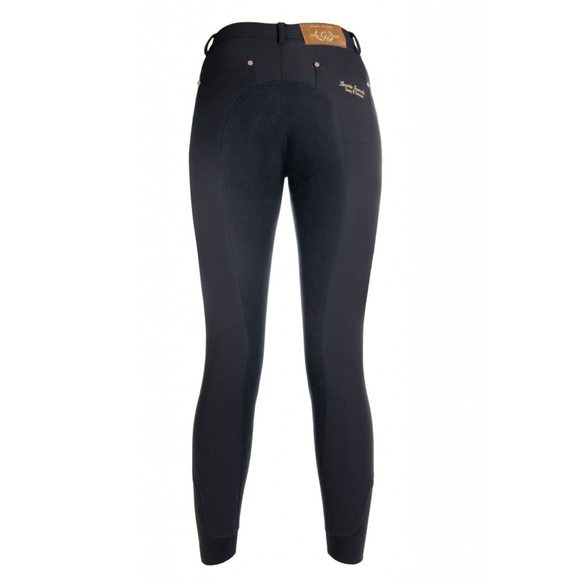 Бриджи с полной леей из искусственной эластичной замши для верховой езды (Riding Breeches with Full Seat). Полная лея обеспечивает наибольшую фиксацию в седле. Материал комфортный для тела, "дышащий", эластичный, грязеотталкивающий. На поясе петли для ремня. Спереди два кармана и лва кармана сзади. Застёгиваются на молнию и брючный крючок.