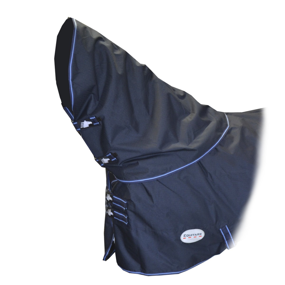 Капор из водонепроницаемого и ветронепродуваемого полиэстера плотностью 1200 D защитит вашу лошадь от осадков. Крепится к попоне двумя липучками.