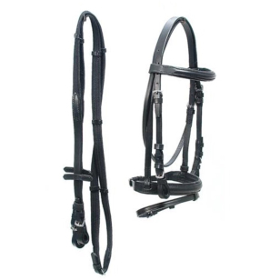 Трензельное оголовье (Leather Bridle) из натуральной кожи. Классическое оголовье. Капсюль и налобный ремени на мягкой подложке, что обеспечит максимальный комфорт вашей лошади. В комплект входит тесьмяный повод с ограничителями и нашивками против скольжения. Фурнитура серебристого цвета.
