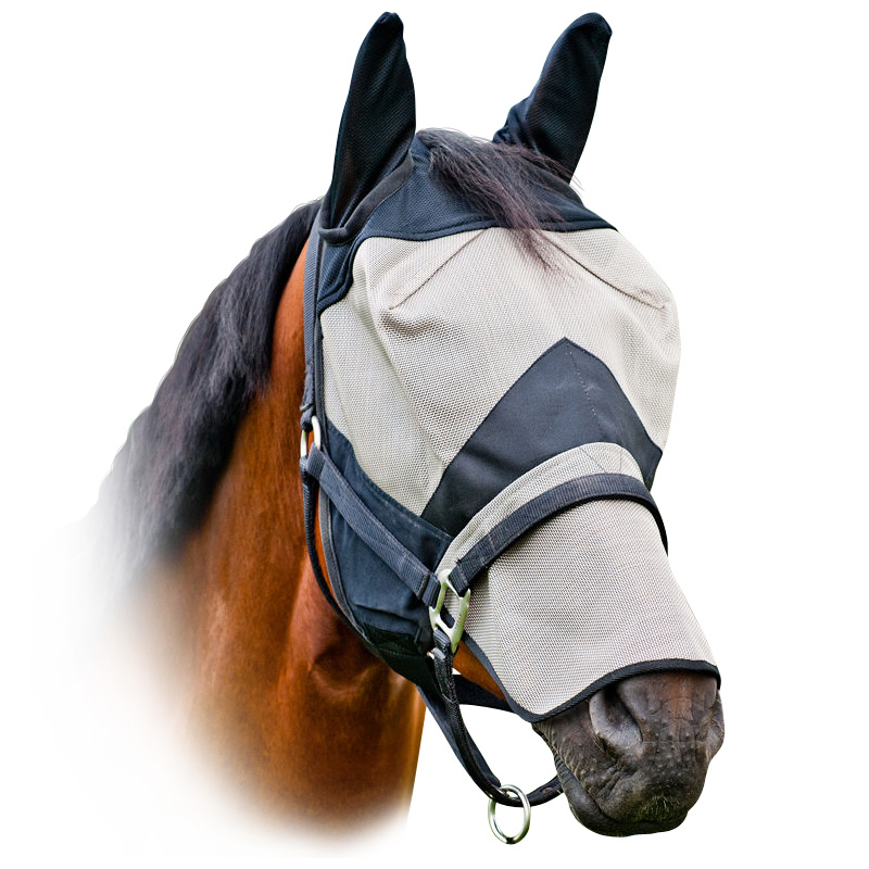 Маска закрывает чувствительные области головы лошади от назойливых летающих насекомых. Удлиненная носовая часть помогает укрыть нос лошади от насекомых и солнца. Супер-мягкая микросетка не натрет кожу и не позволит голове лошади перегреться под жарким солнцем, а благодаря специальным вытачкам сетка не будет касаться глаз и не вызовет их раздражение. В области затылка находится специальное отверстие для челки, которое также обеспечивает дополнительную вентиляцию. Мягкая нейлоновая микросетка блокирует 70% разрушающих УФ лучей и защищает чувствительные мягкие ткани глаз и носа лошади. Маска надежно фиксируется на голове лошади с помощью застежек-липучек.