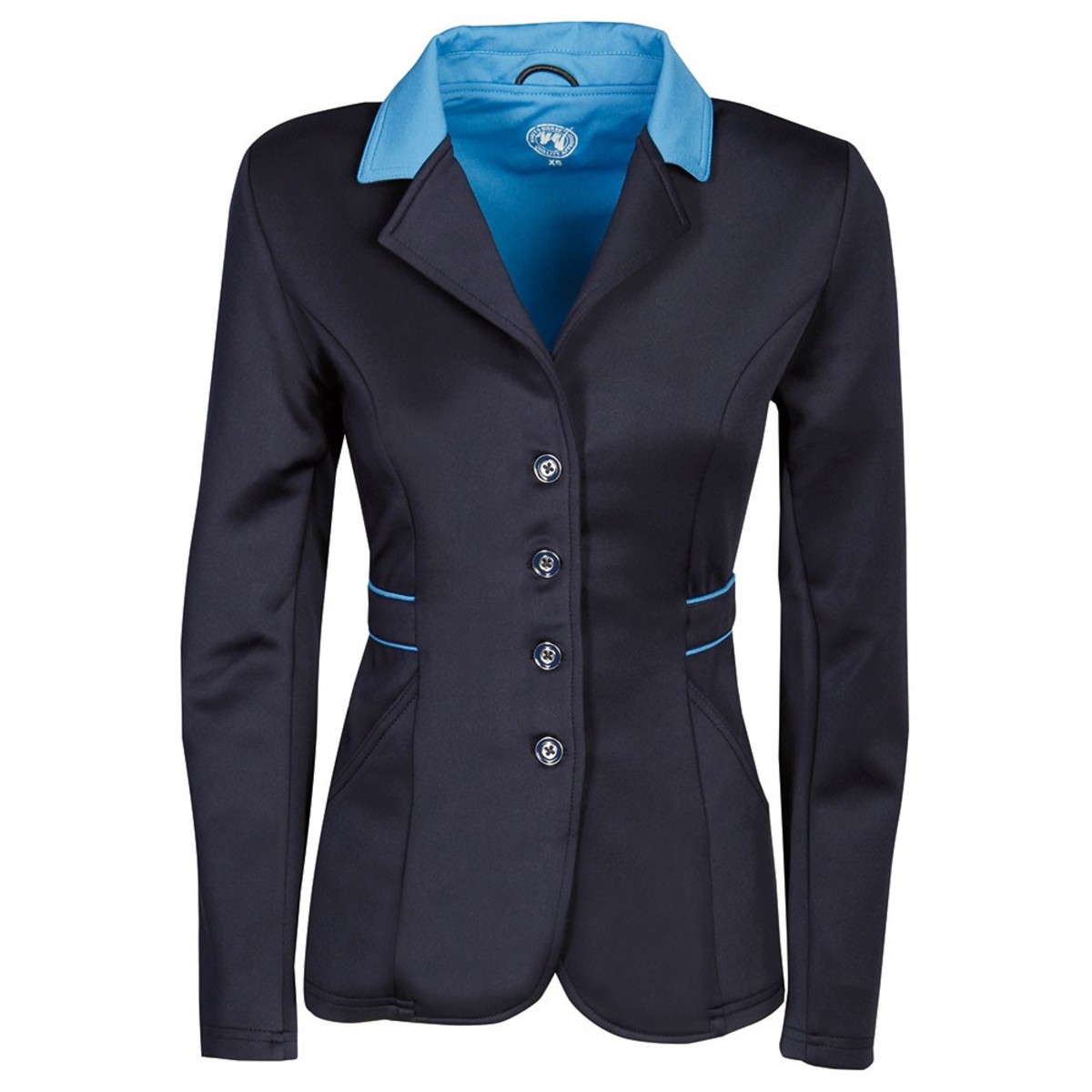 Стильный редингот для выступлений (Competition Jacket for Women) приталенного кроя из ткани софтшелл. Софтшел - легкая ткань с двойным эффектом не пропускает воду, хорошо отводит влагу и обладает охлаждающим эффектом, в результате чего обеспечивает отличную терморегуляцию. Редингот застегивается на молнию и четыре пуговицы. Два боковых кармана. Воротнике контрастного цвета. Две шлицы сзади. Подклад из контрастного цвета.