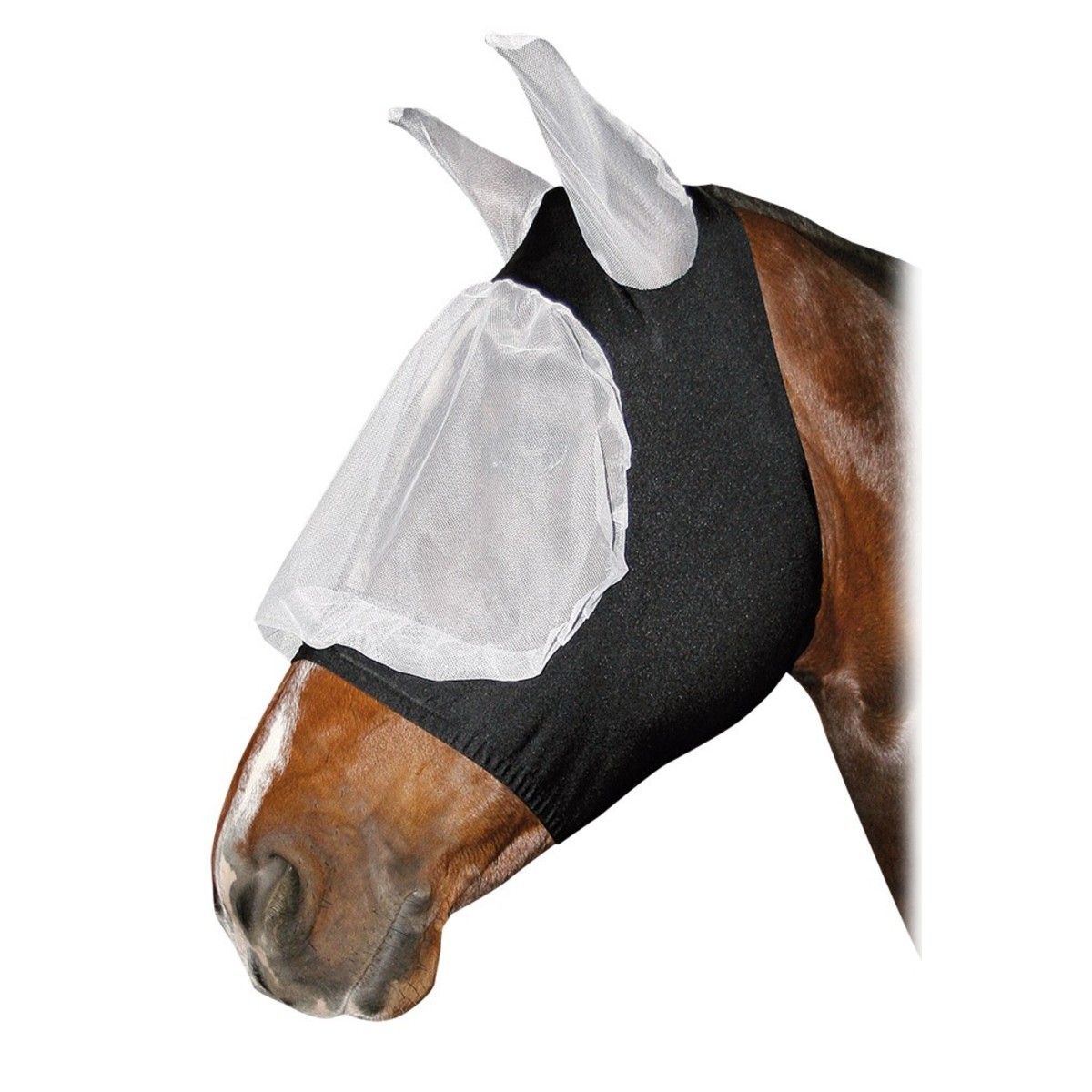 Эластичная маска (Fly Mask) отлично защищает лошадь от летающих насекомых.