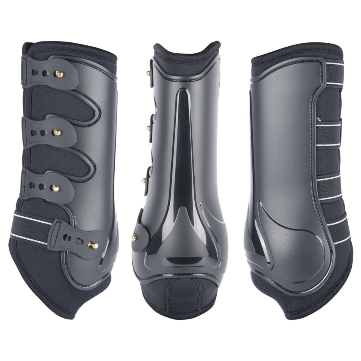 Передние анатомические выездковаые ногавки (Dressage Protectors). Внутренняя форма гарантирует прекрасную посадку по ноге лошади. Оптимальная свобода движения. Подкладка из "дышащего" неопрена прекрасно облегает, в то же время не перегревая ноги лошади. Прочный высококачественный пластик надежно защищает ноги лошади.