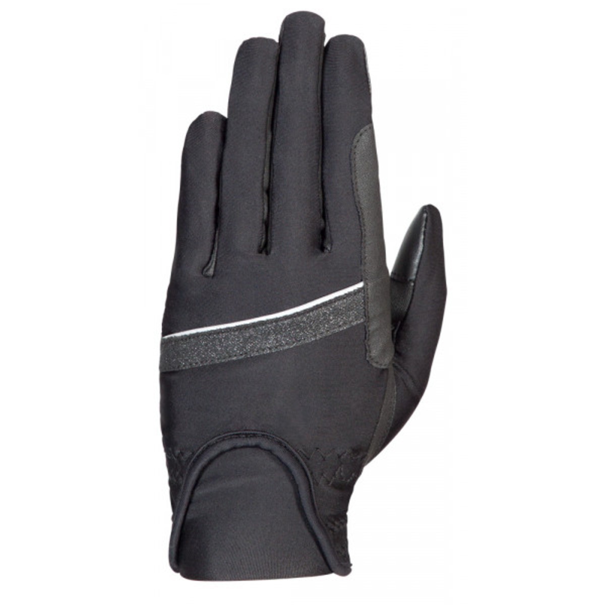 Очень легкие и эластичные перчатки для верховой езды (gloves for riding). Ладонь изготовлена из нескользящей прочной синтетической кожи. На кончиках пальцев расположен специальный материал, позволяющий писать сообщения и отвечать на звонки, не снимая перчаток. Перчатки имеют усиление в области указательного пальца для лучшего сцепления с поводом. Перчатки украшены блестящей тесьмой и светоотражающей окантовкой.