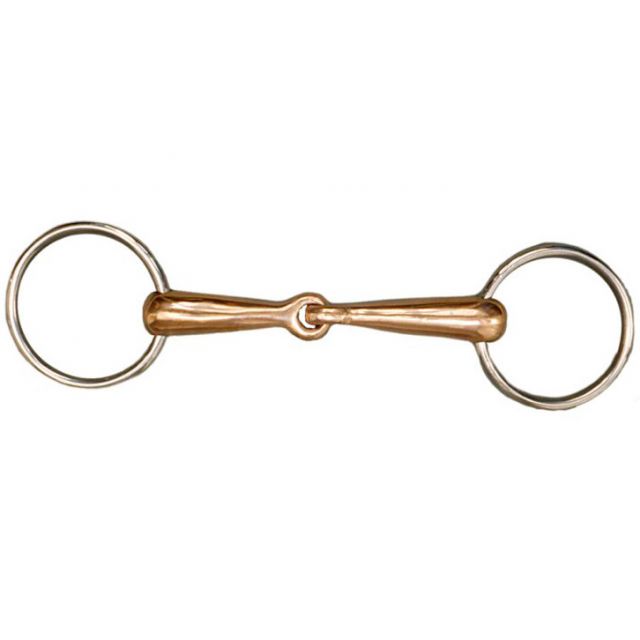 Трензель с кольцами из нержавеющей стали с медным грызлом (bit ring). Медное грызло создаёт приятный сладкий привкус во рту лошади и способствует обильному слюноотделению, стимулируя лошадь лучше отжевывать трензель во время работы.