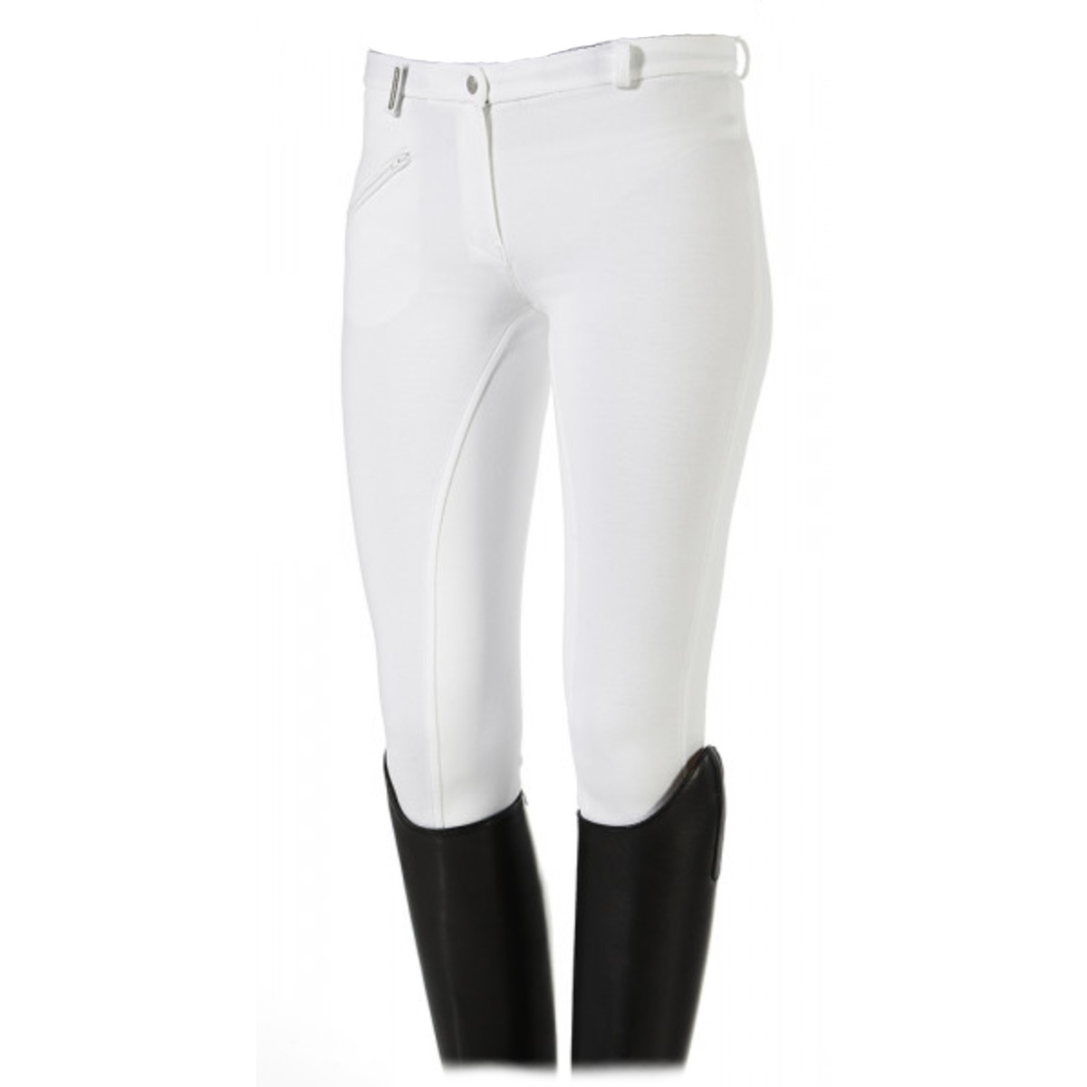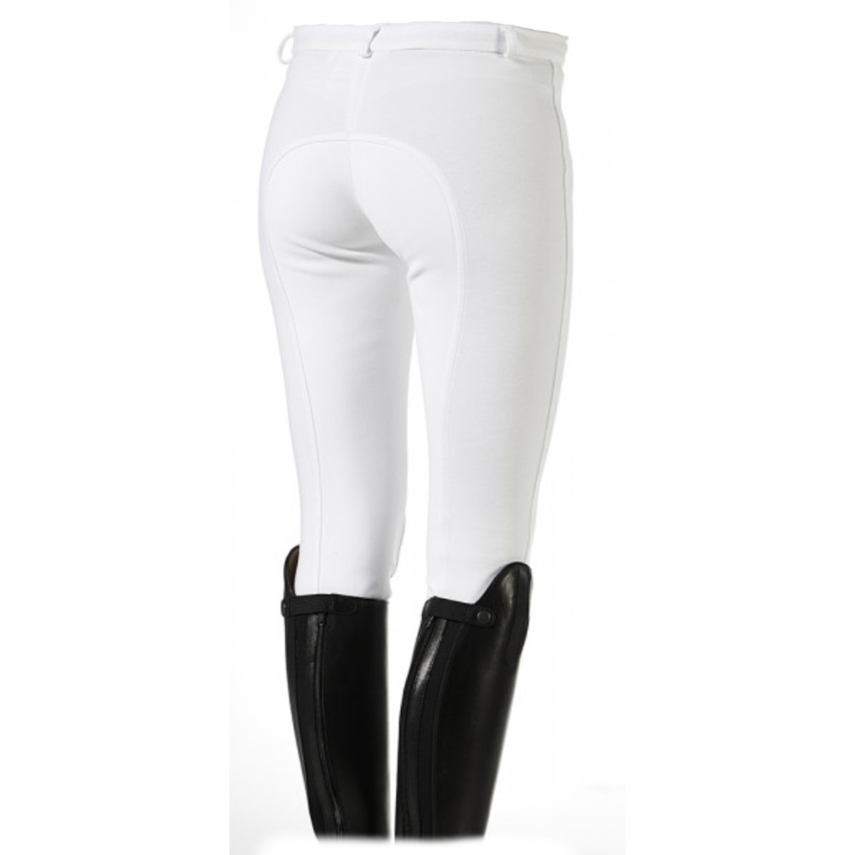 Бриджи классического покроя с полной леей (Cotton breeches with full seat) из искусственной замши. Благодаря высокому содержанию хлопка бриджи приятны к телу, а добавление эластана позволяет им сохранять форму. Лея обеспечивает надежное сцепление с седлом. Талия средней высоты хорошо закрывает поясницу. Передний карман на молнии. Низ брючин застегивается на липучку.