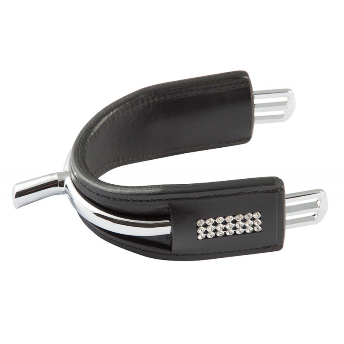 Чехол на шпоры из натуральной кожи украшен стразами. Предохраняет обувь, уменьшает движения шпор по пятке.