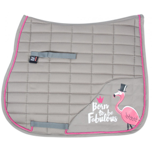 Универсальный вальтрап (All-Purpose Saddle Pad) анатомической формы. Наполнитель из поролона и синтепона делает вальтрап объемным, что очень важно для амортизации. Вальтрап хорошо держит форму и легок в уходе. Застежки-липучки и петелька у подпруги надежно удержат его на месте, а высокий вырез у холки не позволит ему сползать назад. Украшен контрастной шнуром и принтом в виде фламинго.