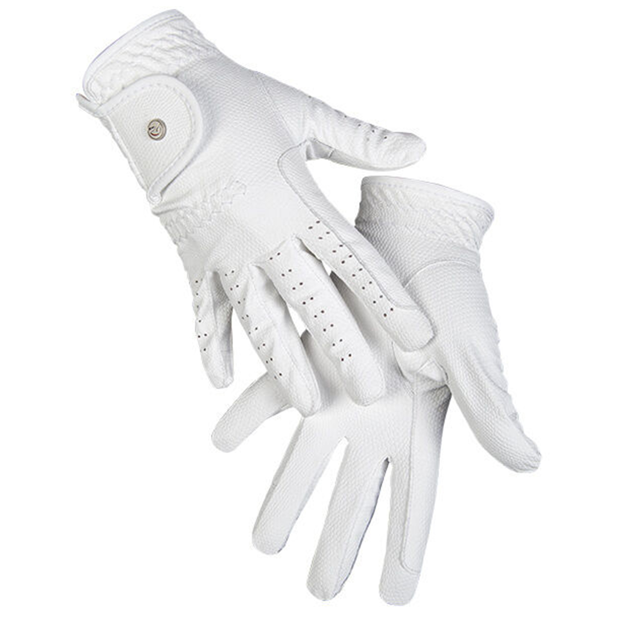Перчатки для верховой езды (gloves for riding) из полиуретановой кожи. Перфорированная кожа пропускает воздух, что обеспечивает комфорт во время езды. Застегиваются на липучку в области запястья. Перчатки хорошо облегают руки не стесняя движения. С усилением в области указательного пальца для лучшего сцепления с поводом. Удобные и износостойкие.