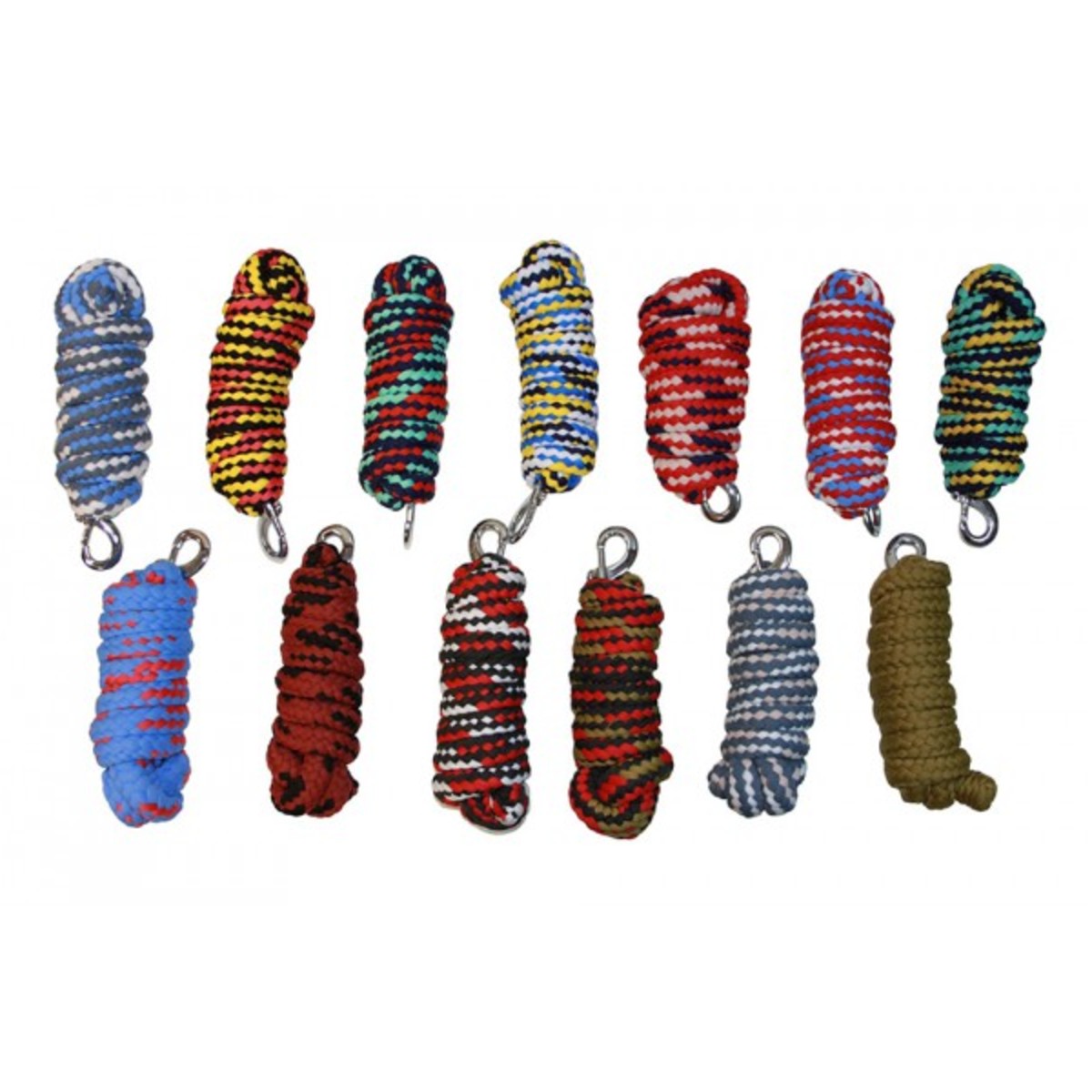 Плетёный чумбур с обычным карабином. Выполнен из нескользящего прочного материала. Сочетание контрастных цветов украшает чумбур. Металлический карабин серебристого цвета.