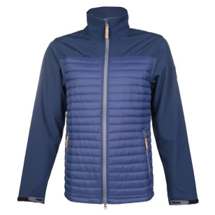 комбинированная стеганая мужская толстовка для верховой езды (Men's Jacket). Застегивается на молнию с двумя бегунками. Два боковых кармана на молнии. Вехняя часть толстовки и рукава выполнены из ткани софтшелл. Воротник стойка.
