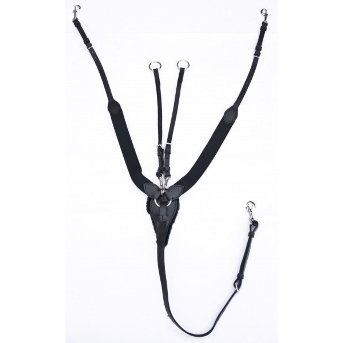 Удобное подперсье с мартингалом из качественной кожи. Не позволяет седлу сползать назад при езде по пересеченной местности. Цвет резинки может отличаться от изображения.